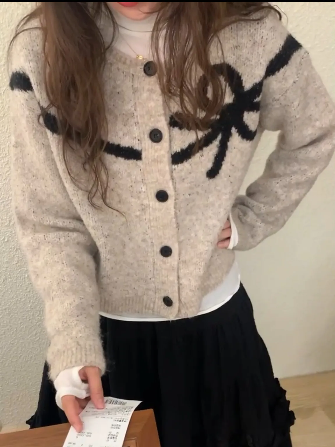 A56 1124高檔可愛家蝴蝶結排釦圓領羊駝毛混馬海毛針織毛衣