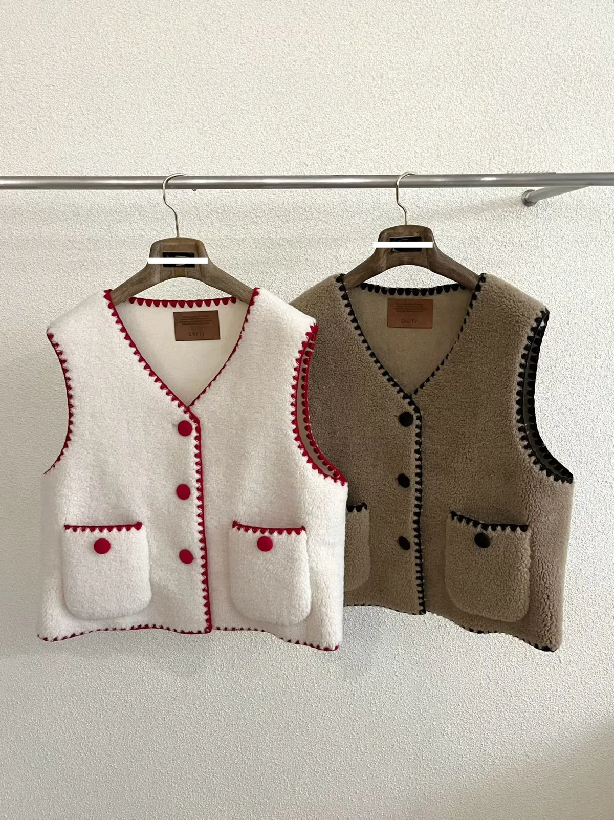 A60 1124高檔可愛家撞色滾邊排釦V領毛毛背心
