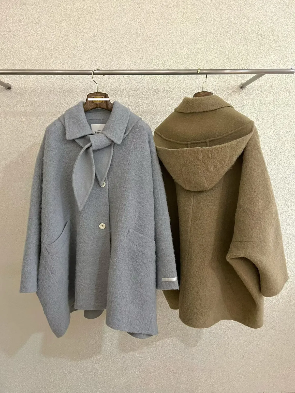 A62 1124高檔可愛家手工羊毛披肩帽外套