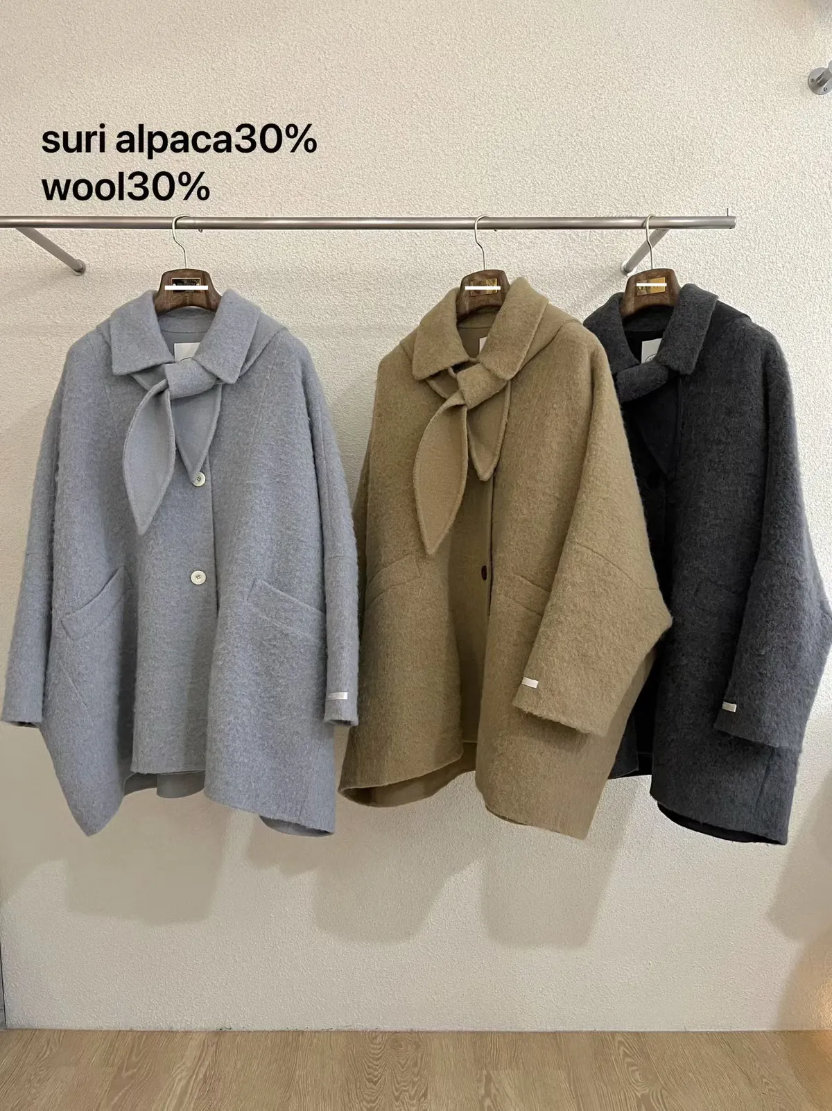 羊毛70%、羊駝30%,側口袋,帽子可拆