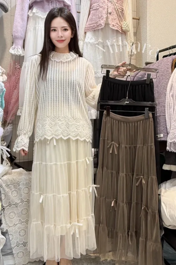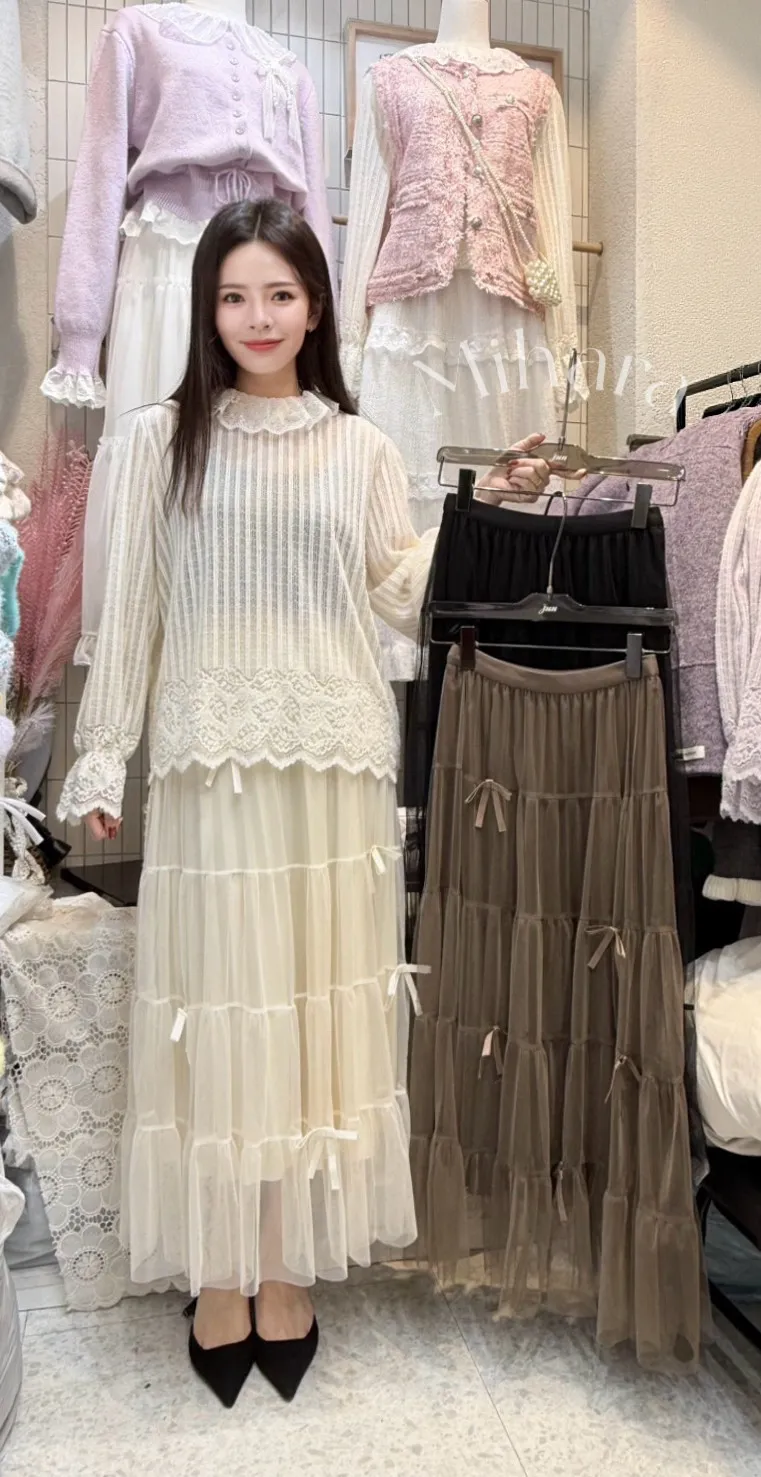 A105 1125甜美家蝴蝶結緞帶網紗半裙3色