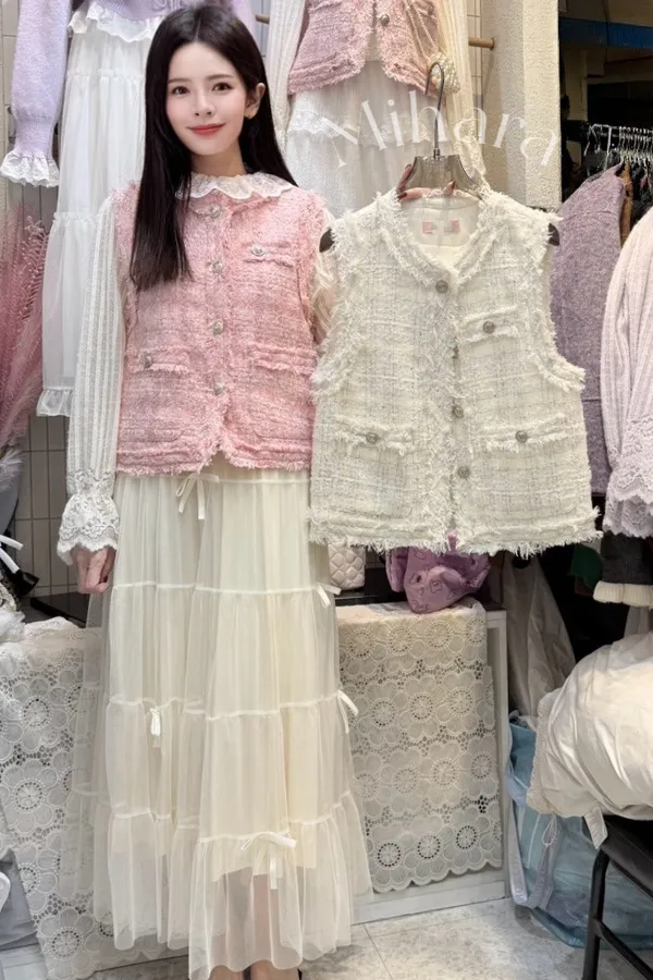 A106 1125甜美家排釦圓領小香背心2色