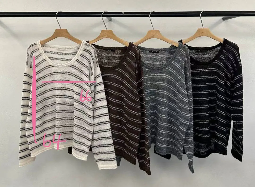 A66 1125高檔套裝家橫條圓領針織上衣4色