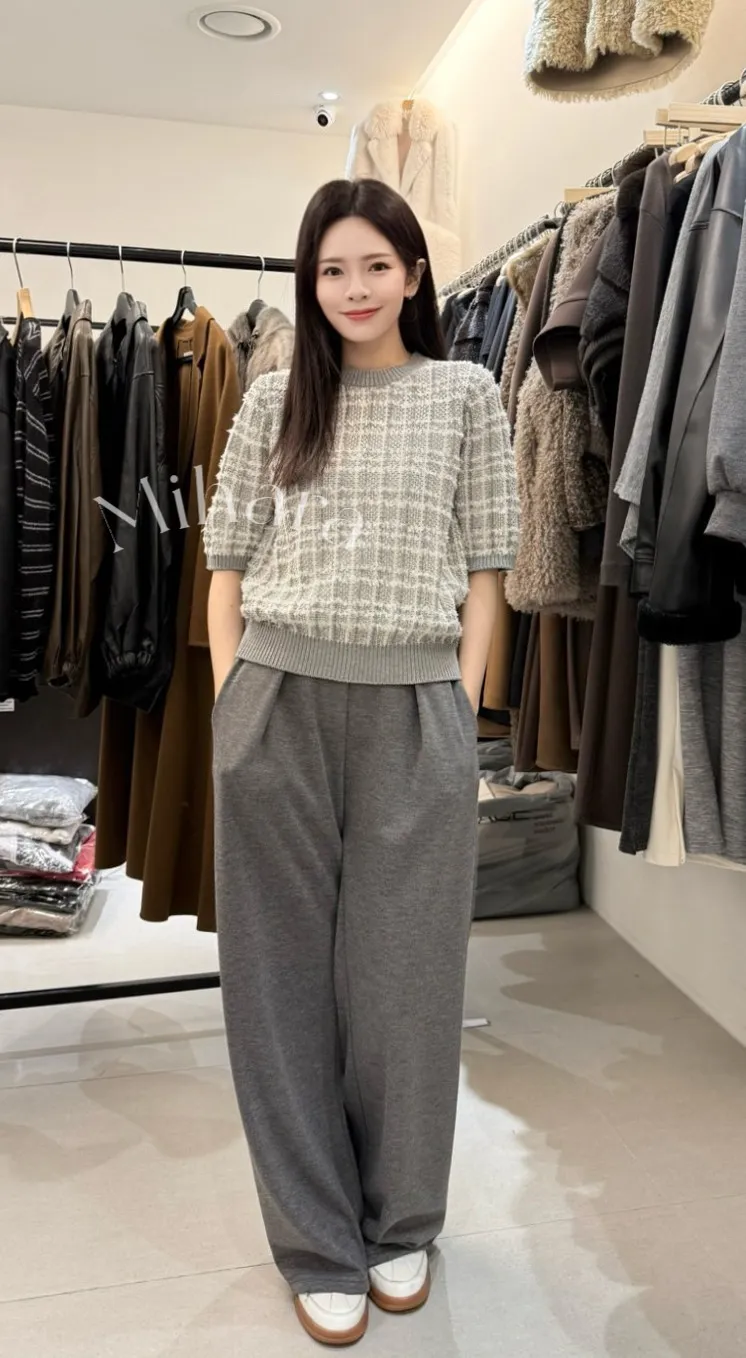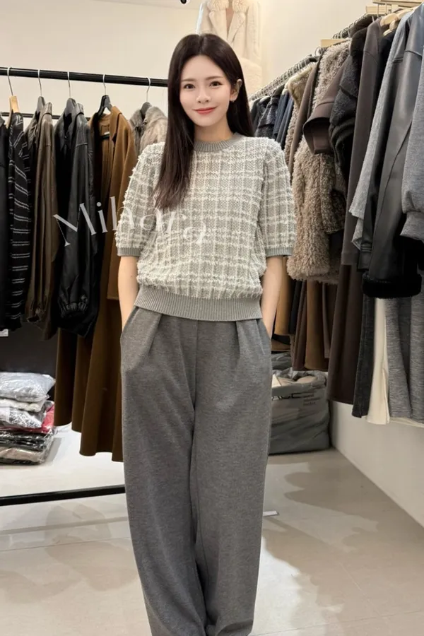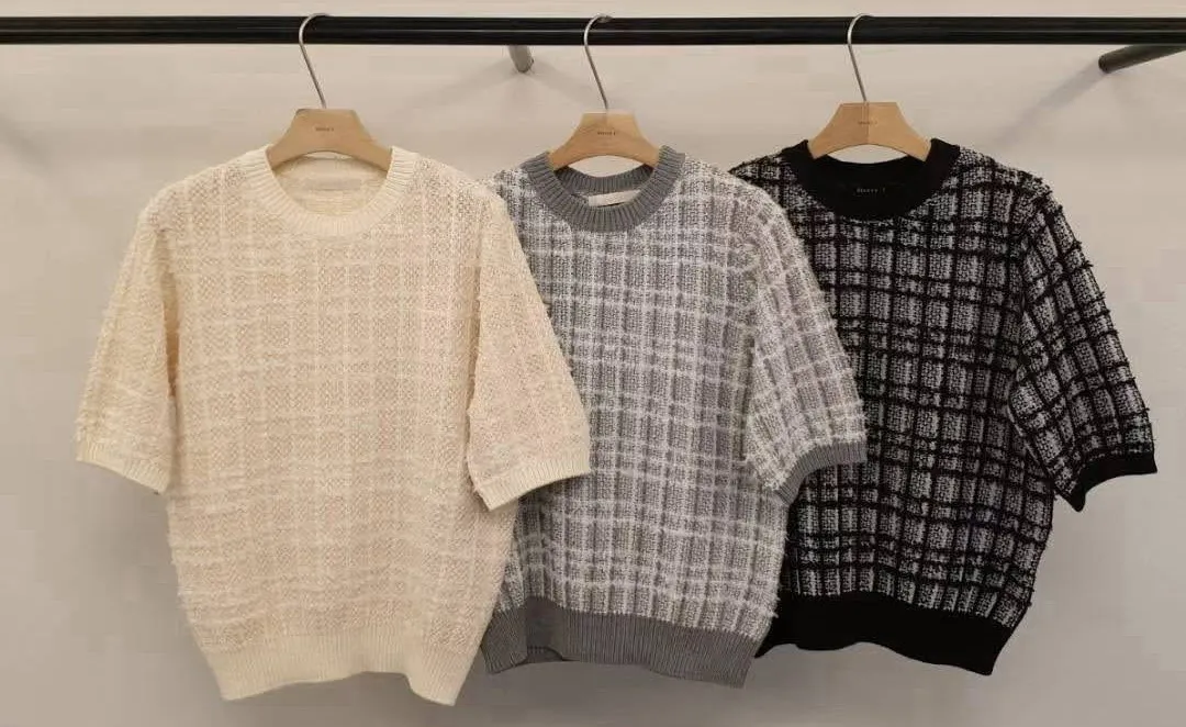 A67 1125高檔套裝家高檔小香風針織混色短袖上衣3色