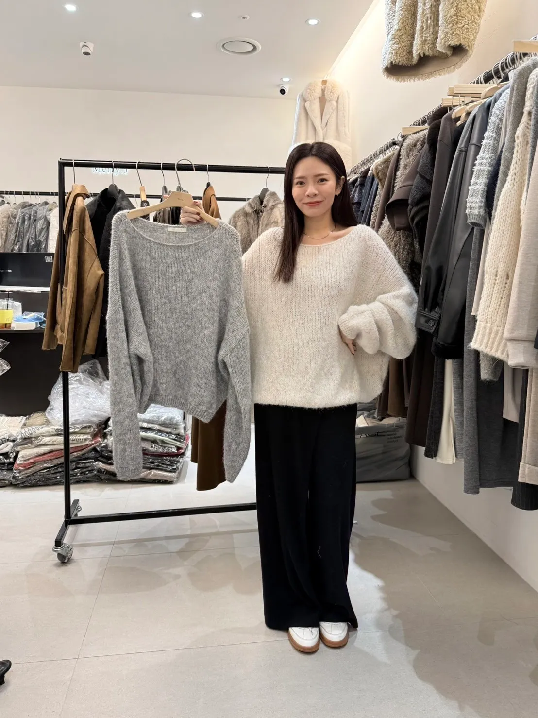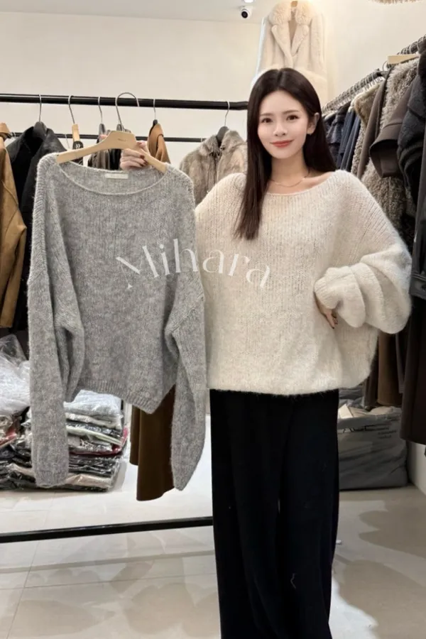 A80 1125高檔套裝家大圓領可拉斜領針織毛衣4色