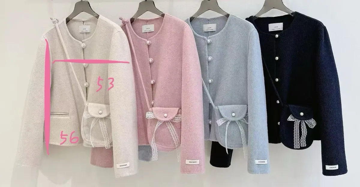 A92 1125甜美家羊毛85%小香手工外套附蕾絲蝴蝶結小包4色