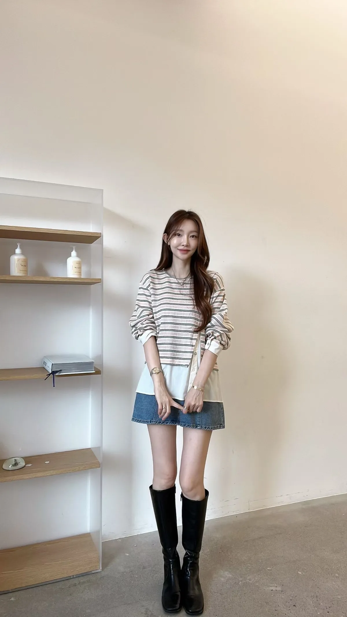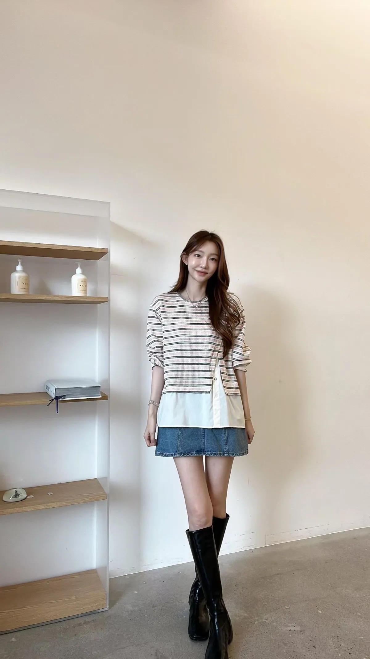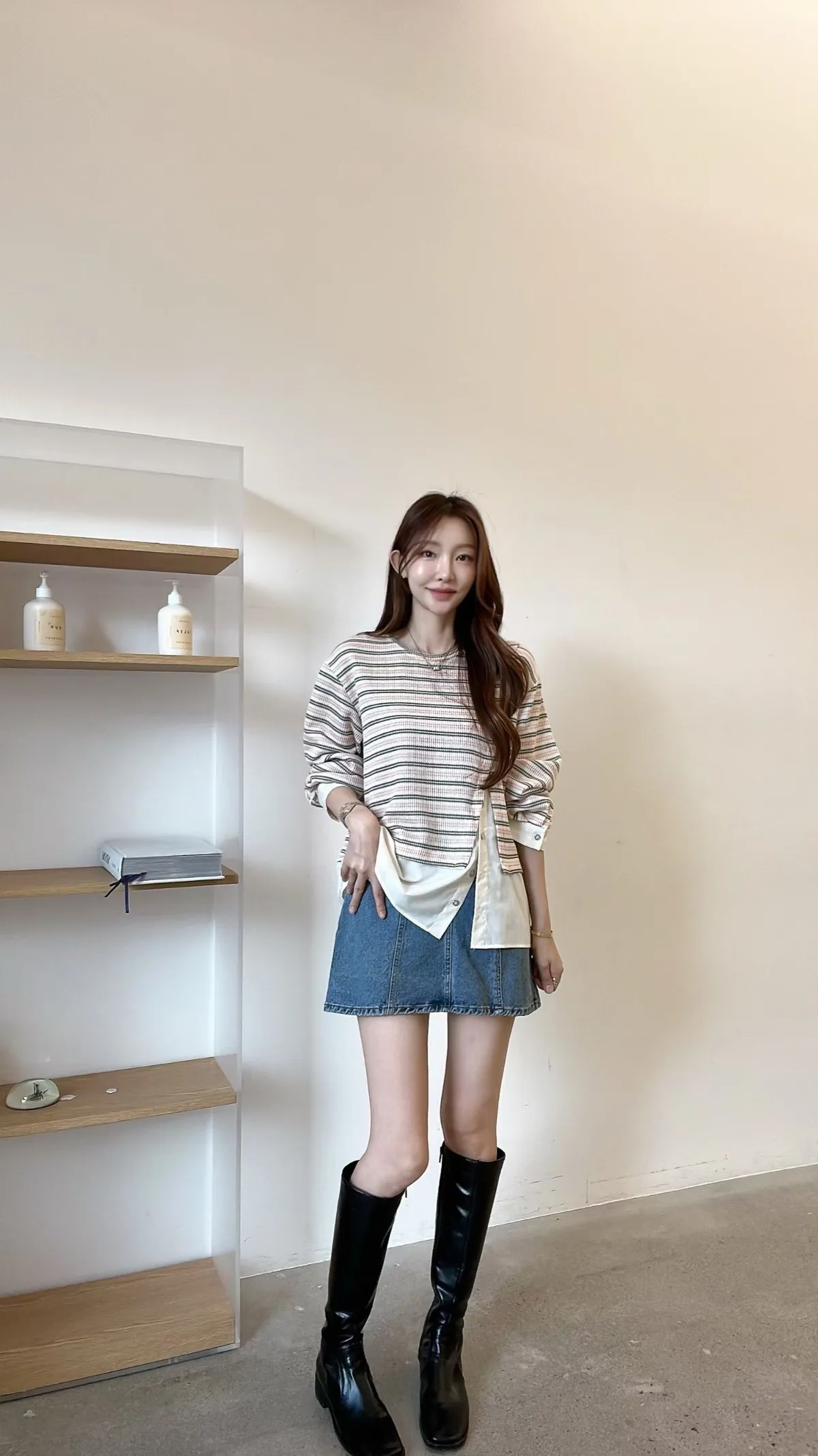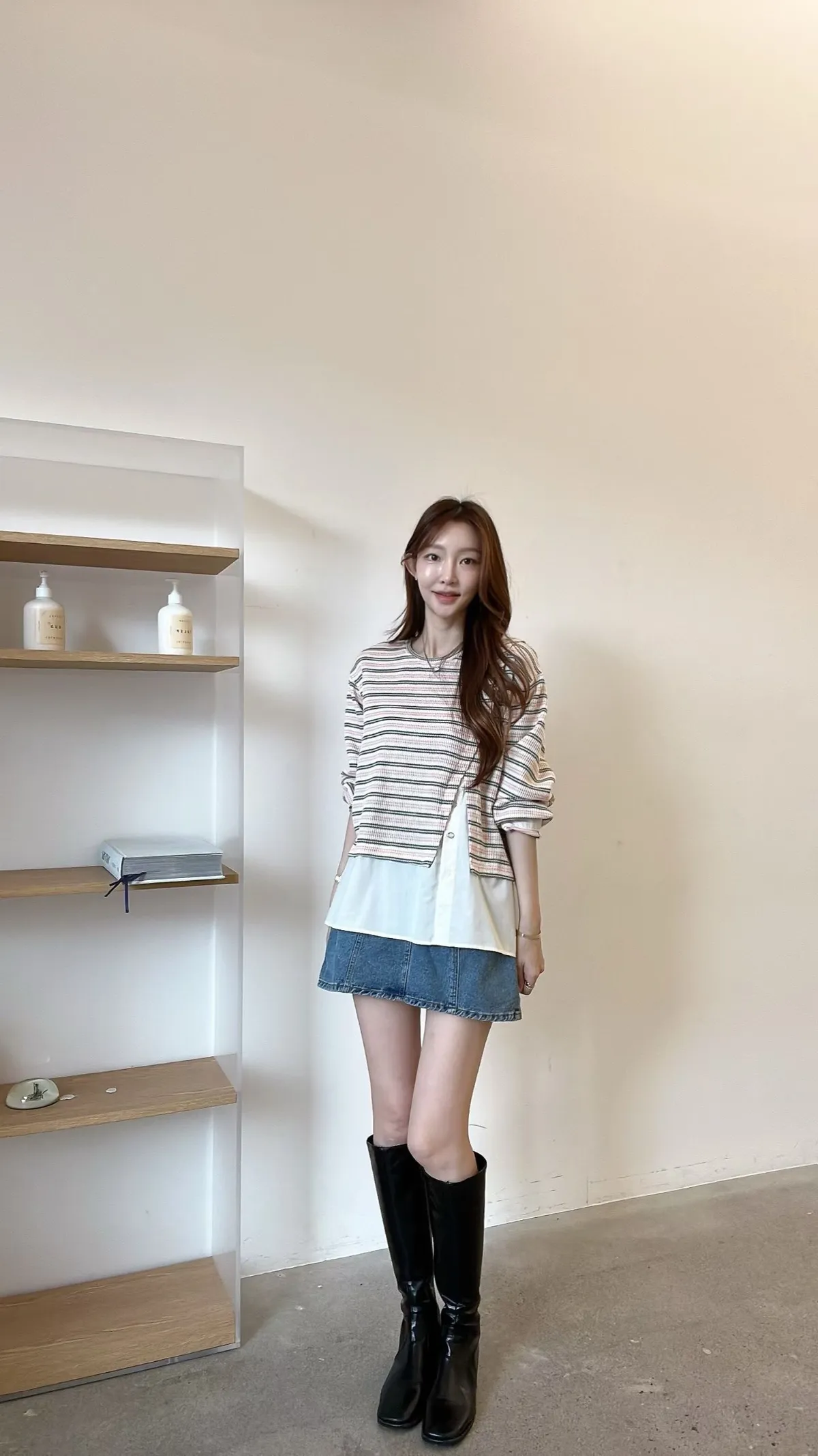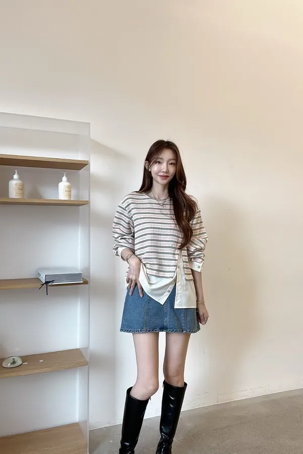 E150仙女歐膩條紋拼接上衣
