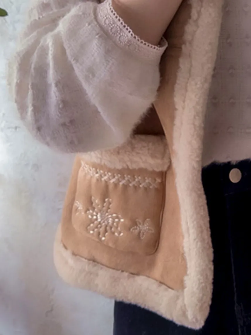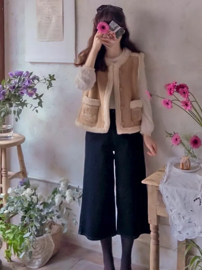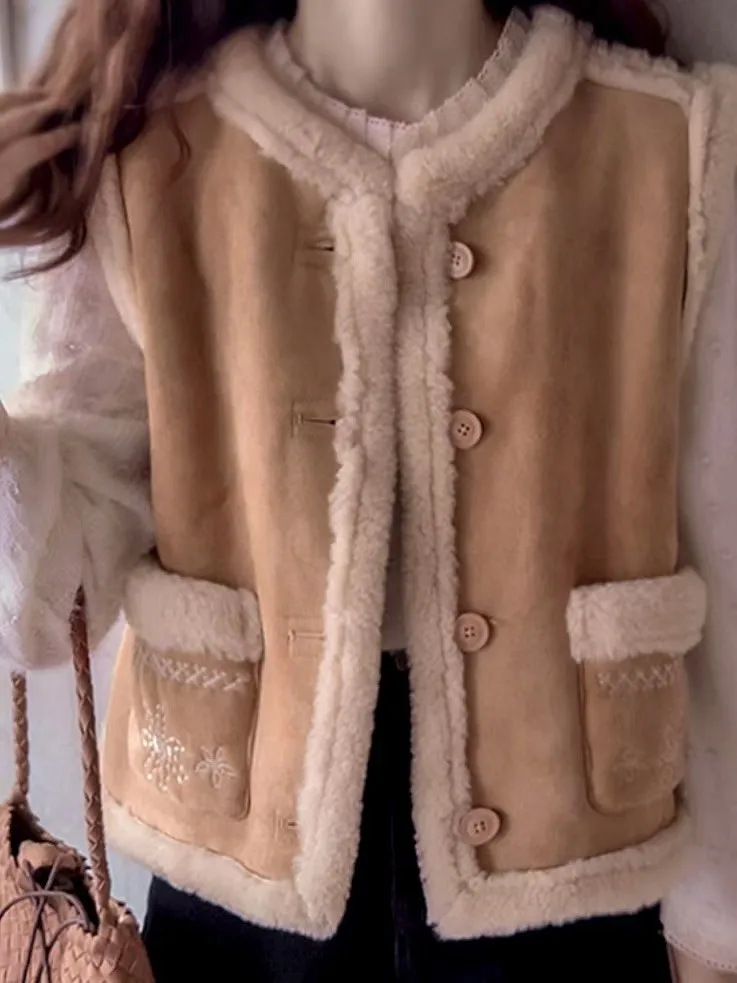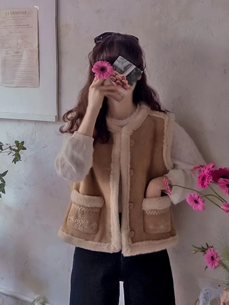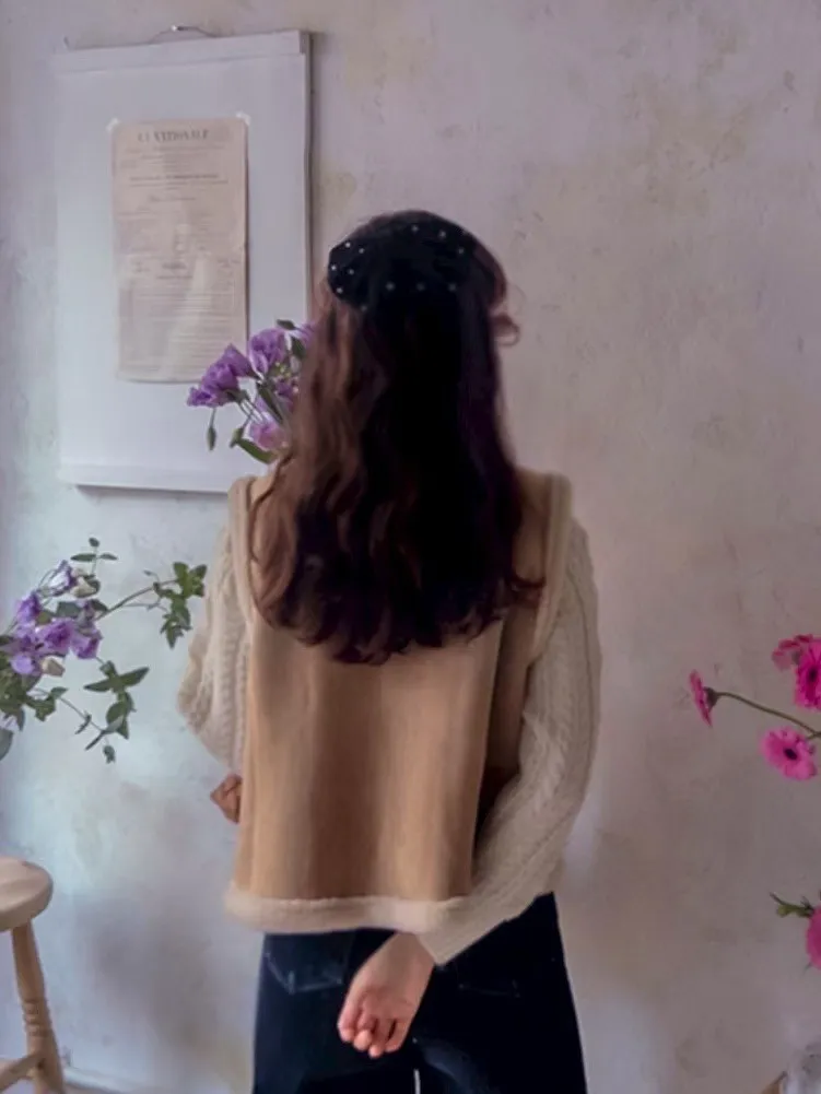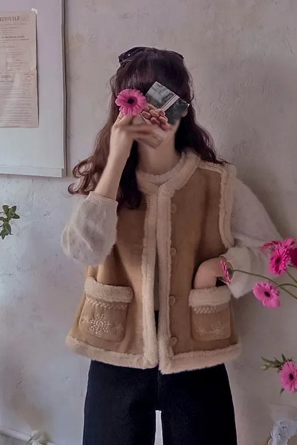 A3 1127可愛家羊羔毛滾邊麂皮背心
