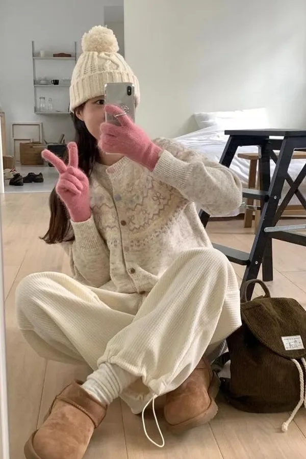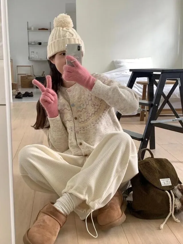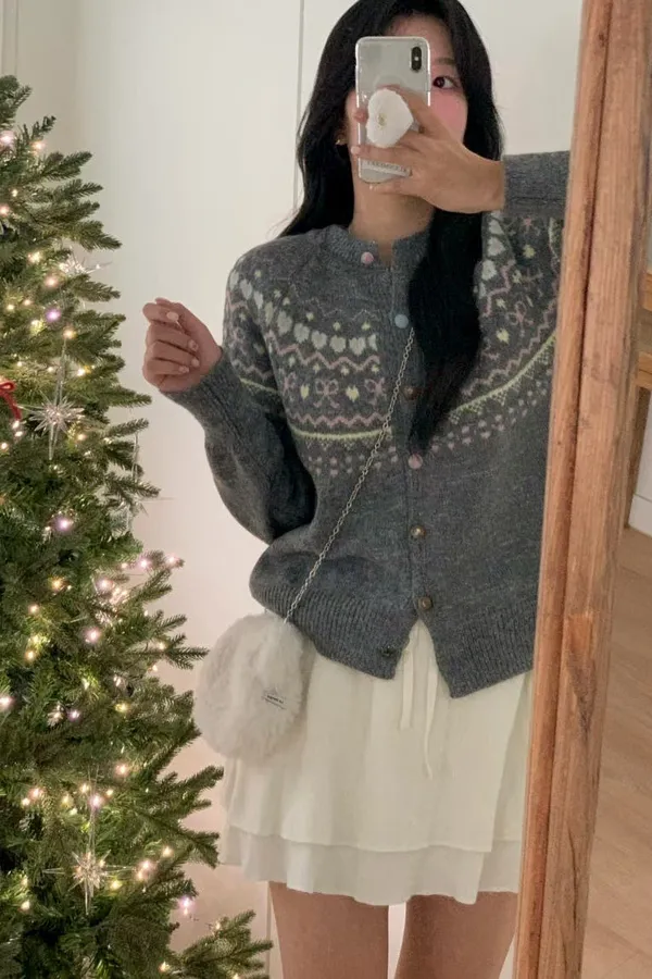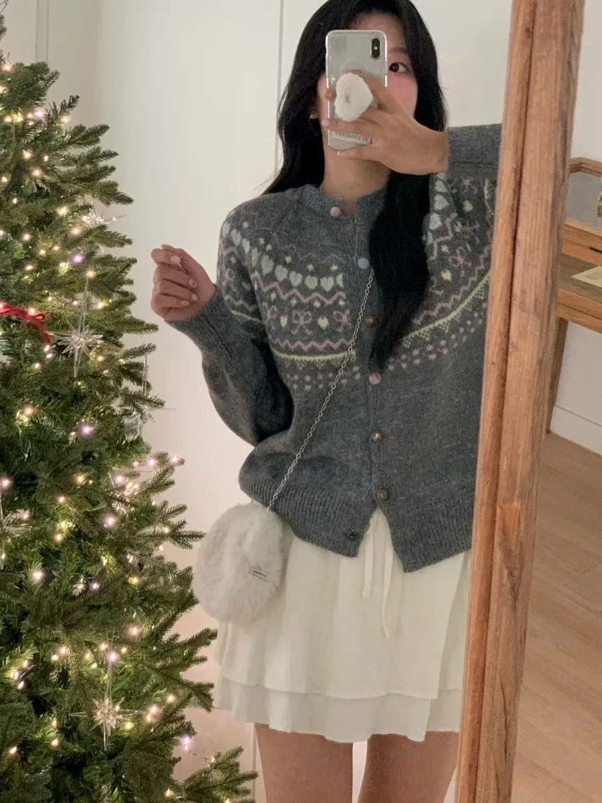 A6 1127可愛家聖誕感彩色排釦圓領針織毛衣2色