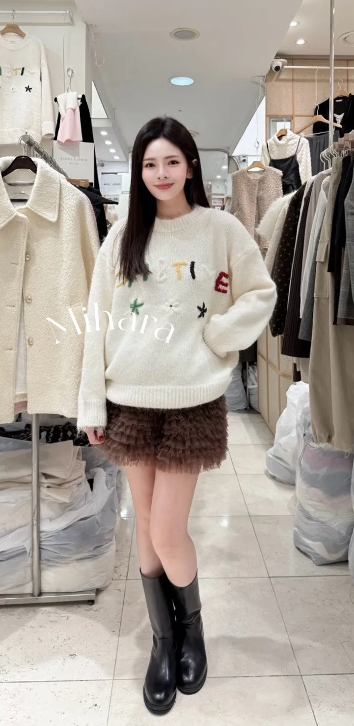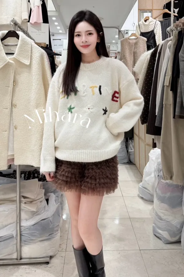A19 1127可愛家彩色英文字母圓領針織毛衣