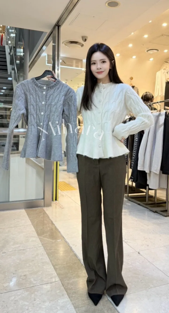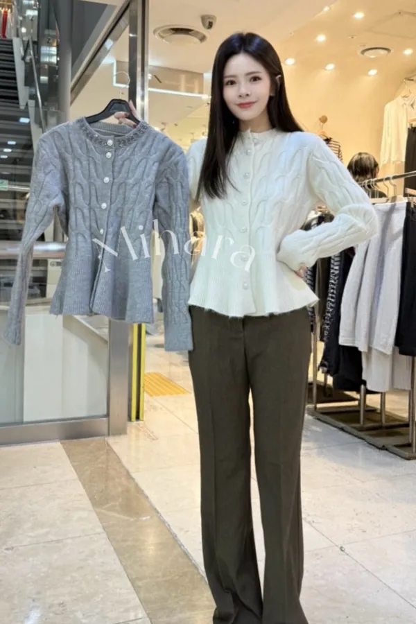 A27 1127西裝套裝家釘鑽麻花編排釦圓領針織上衣2色