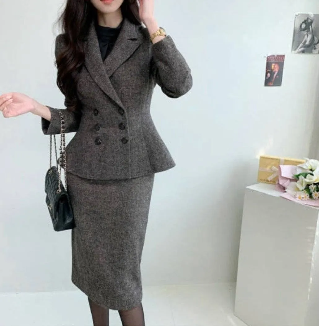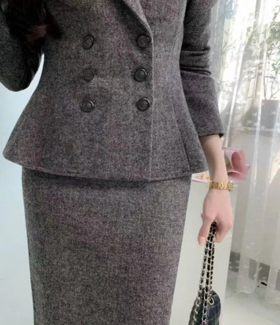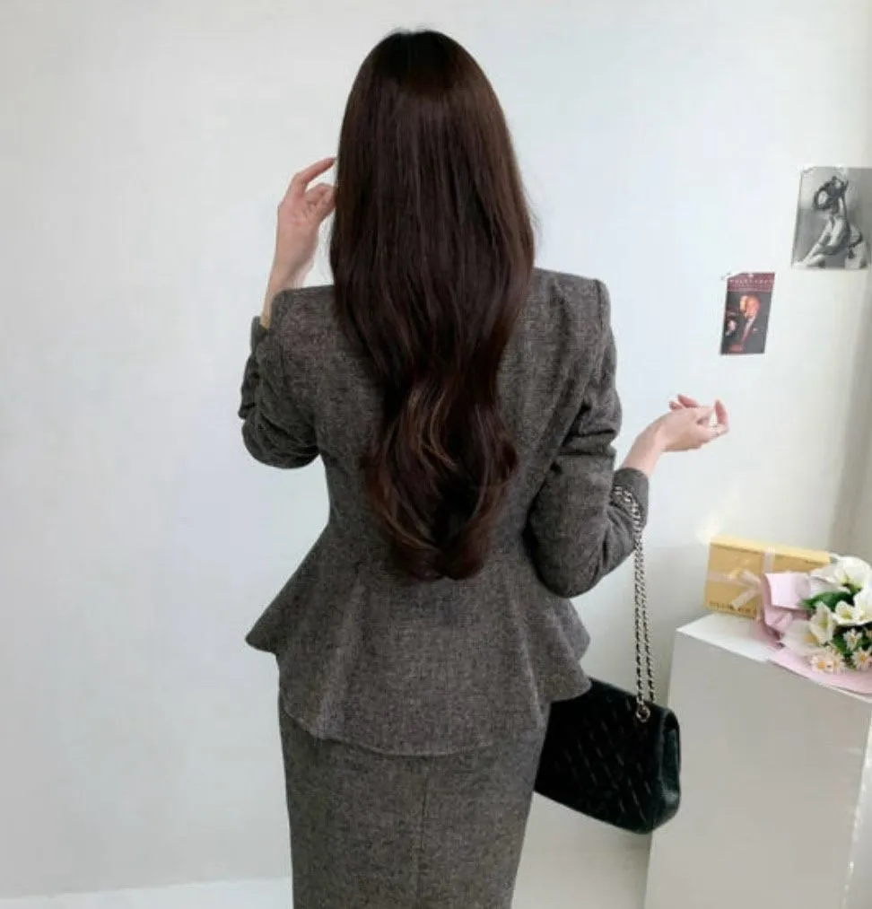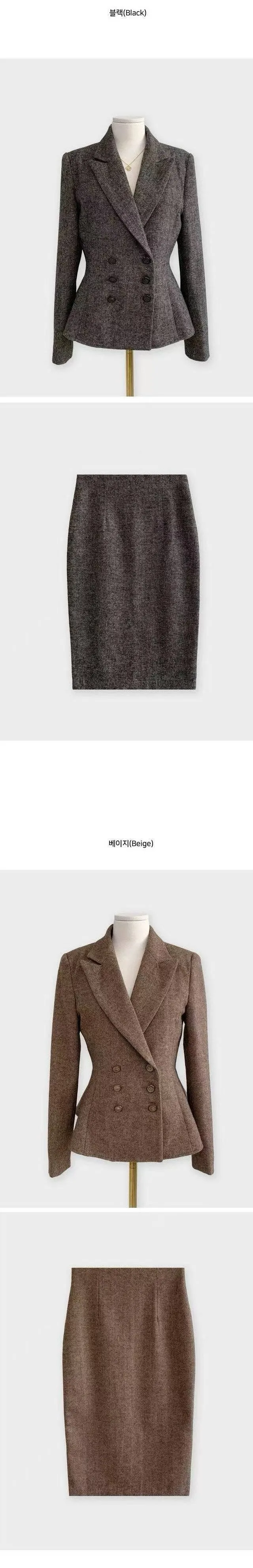 A33 1127西裝套裝家後開衩人字紋包臀裙2色(S/M/L)