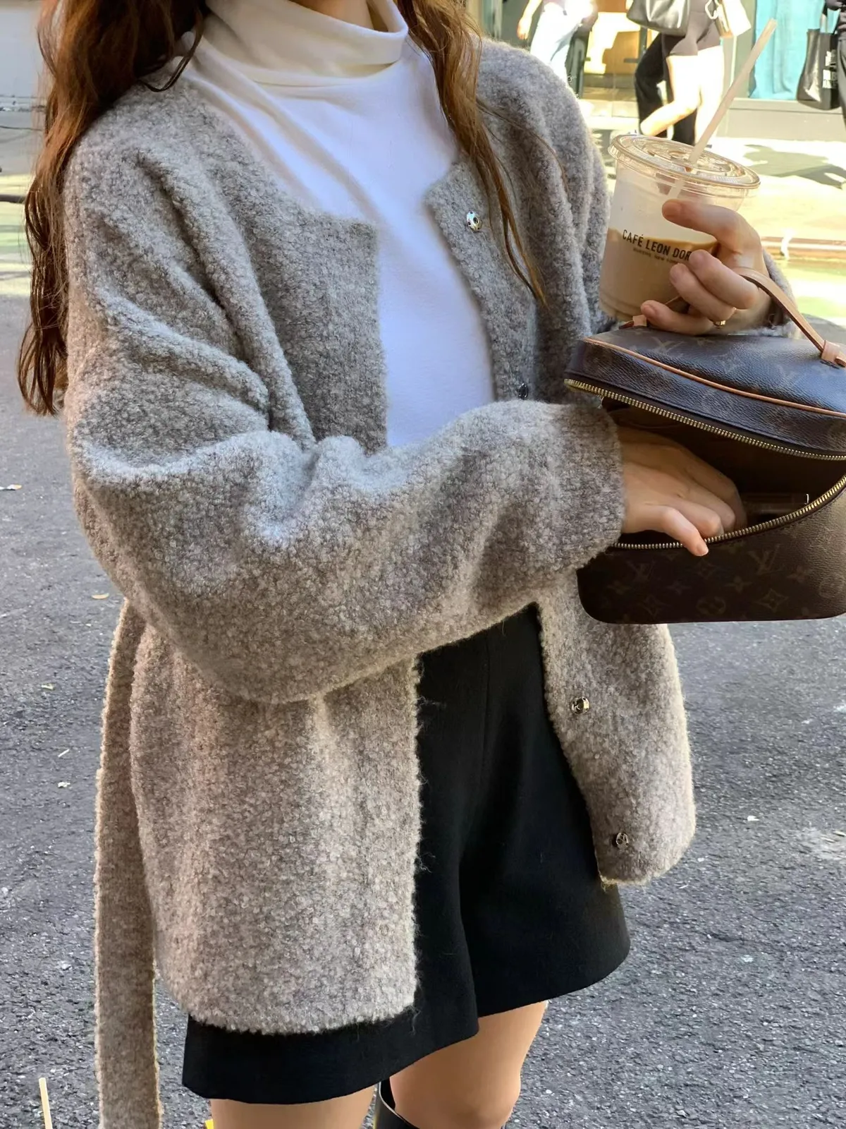 E64高檔Li家兩面穿排釦立領羊毛5%上衣