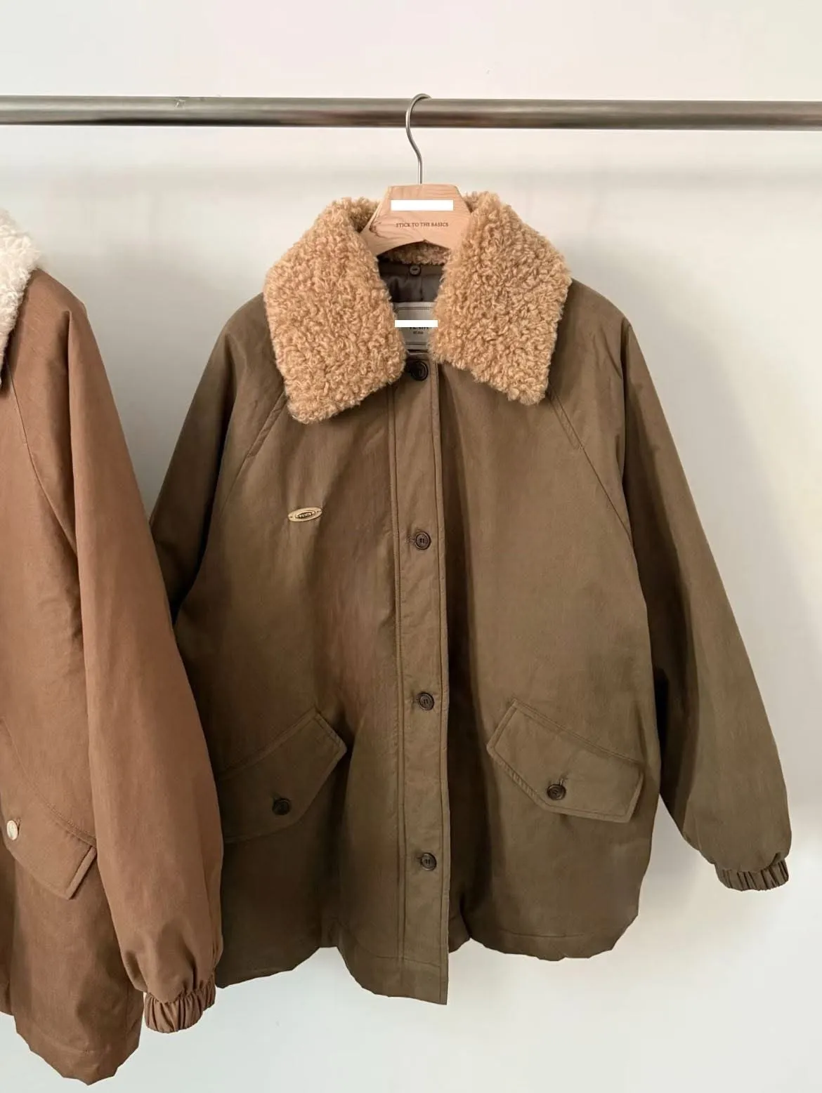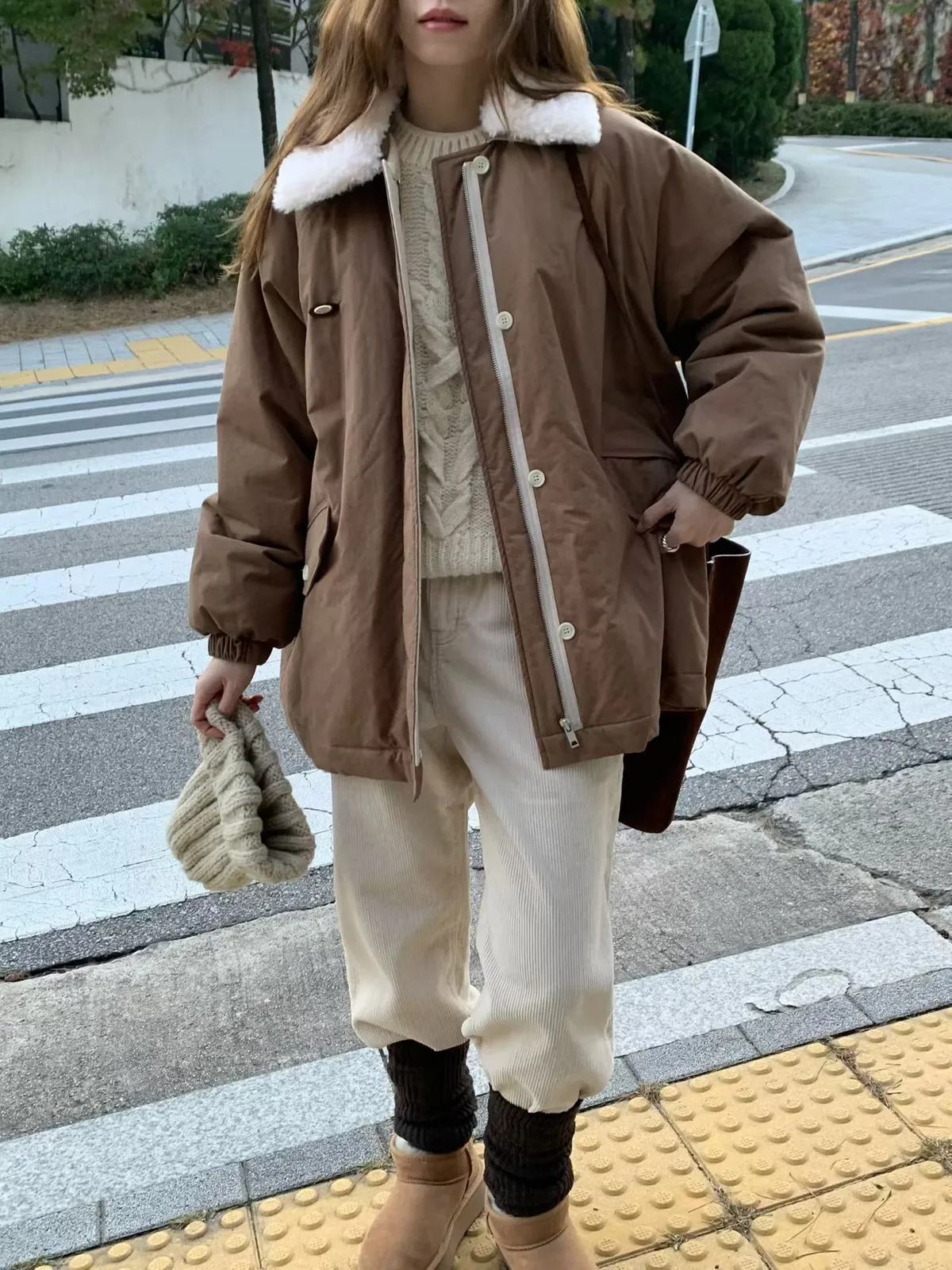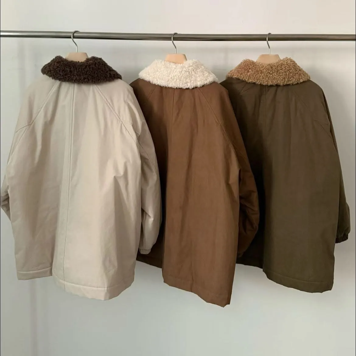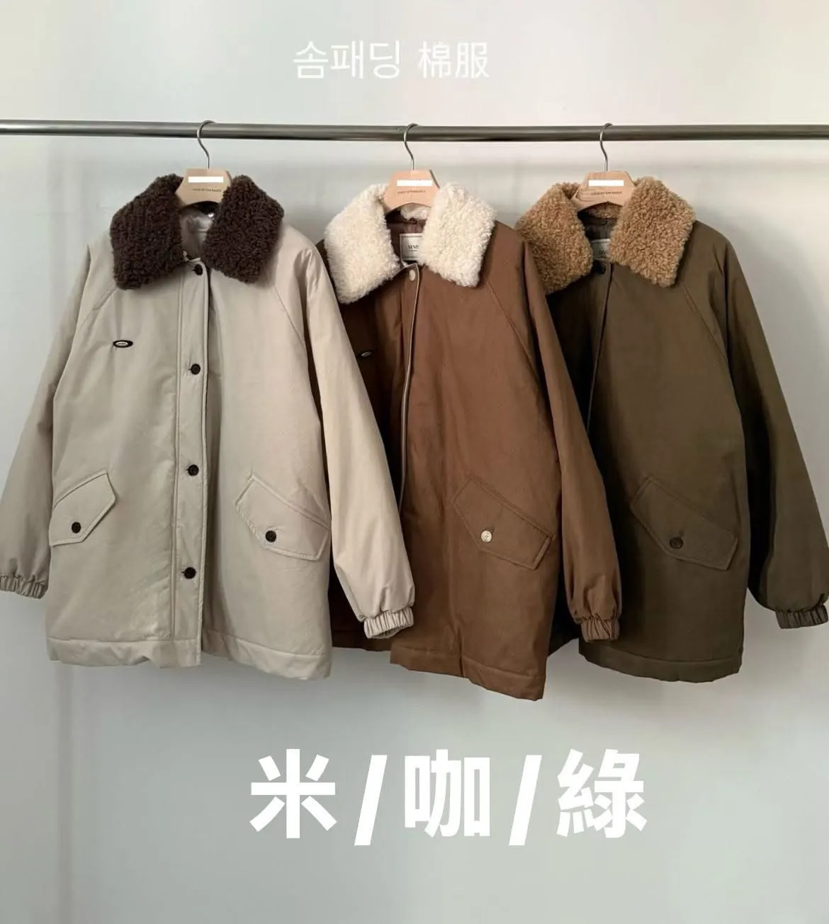 C223高檔捲髮毛毛領鋪棉保暖外套3色