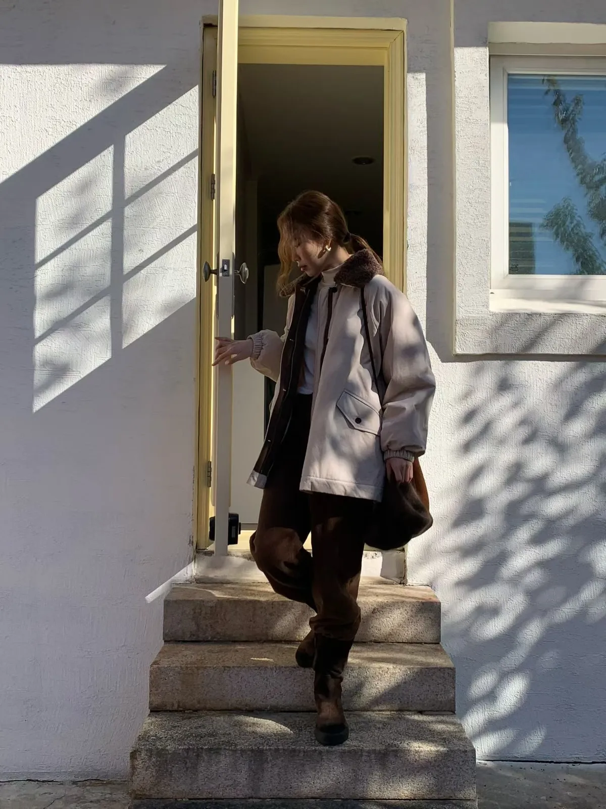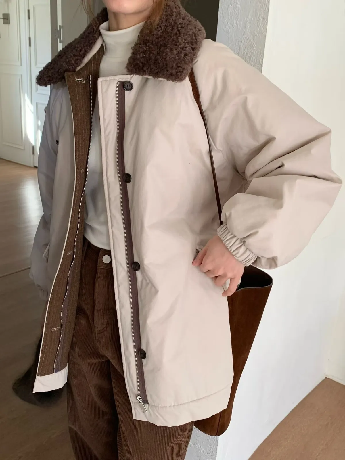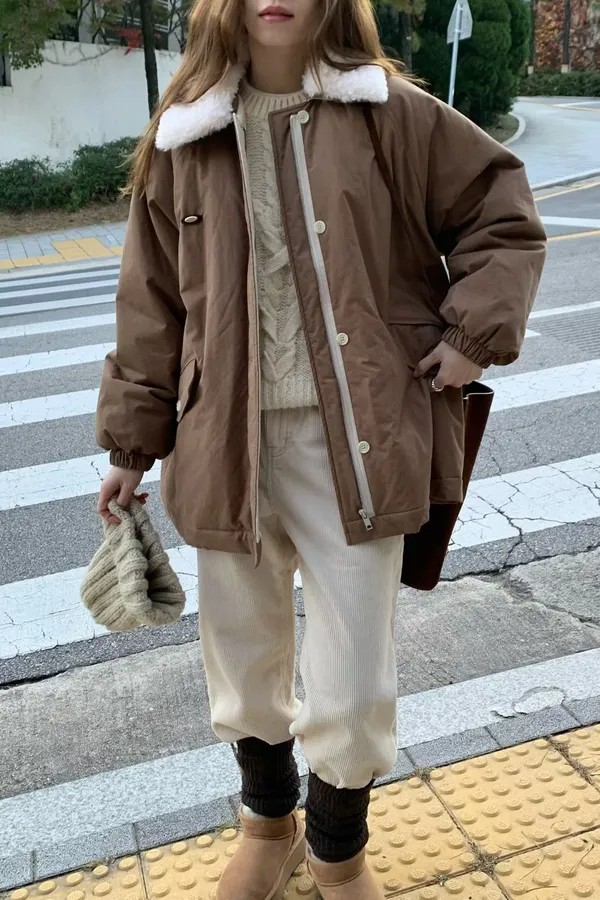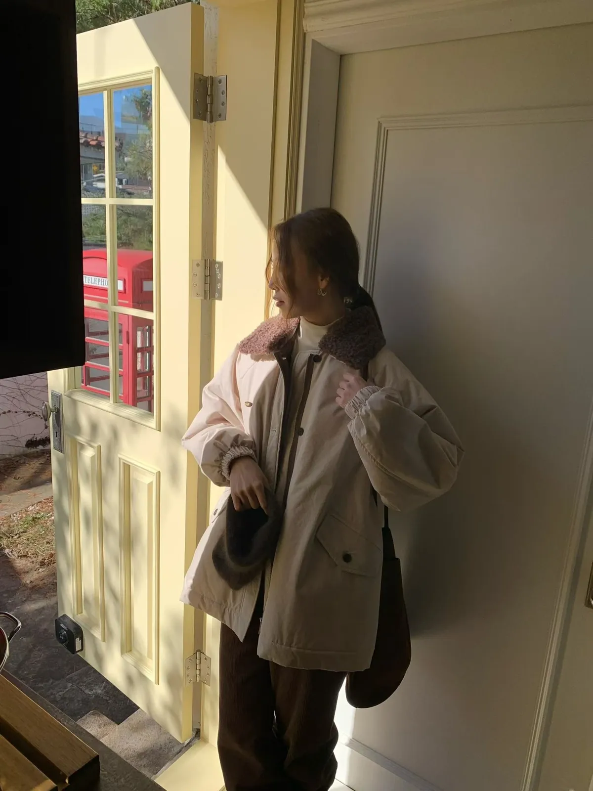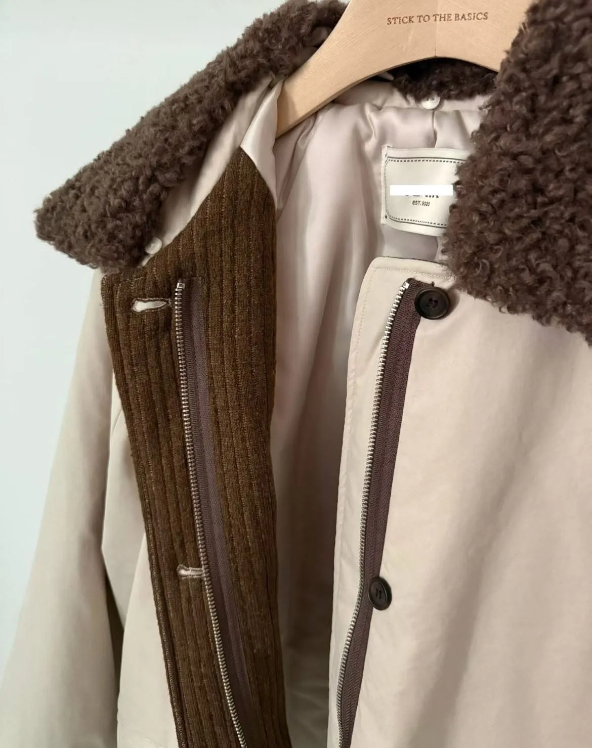 C223高檔捲髮毛毛領鋪棉保暖外套3色