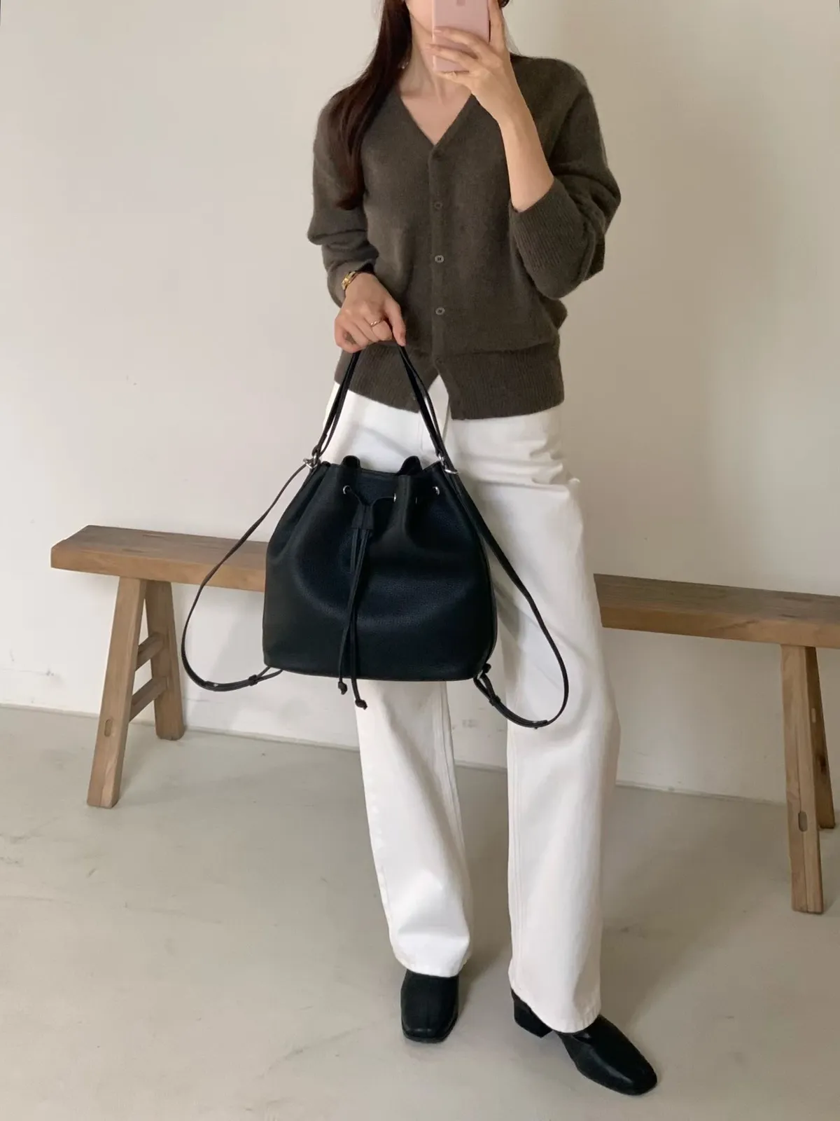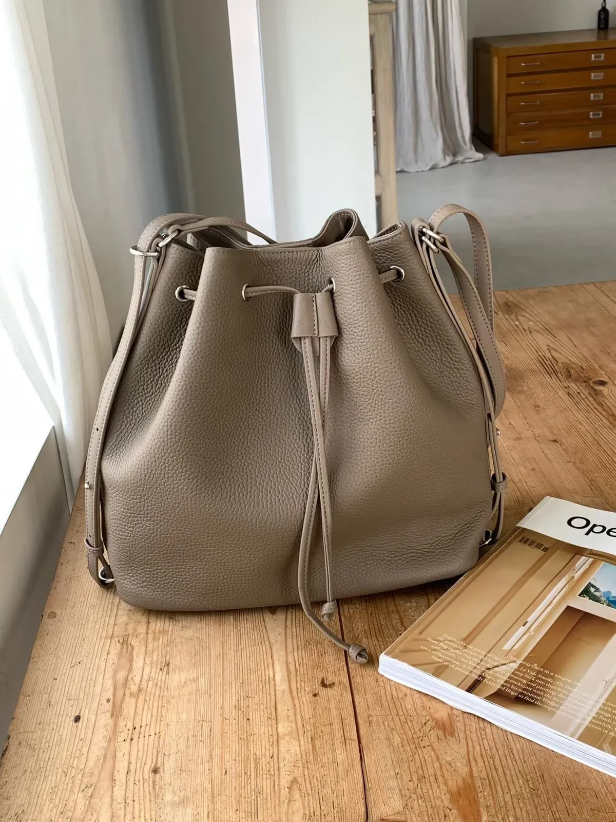 A1 1130荔枝紋牛皮方形水桶包3色(手提/肩背/側背/後背)