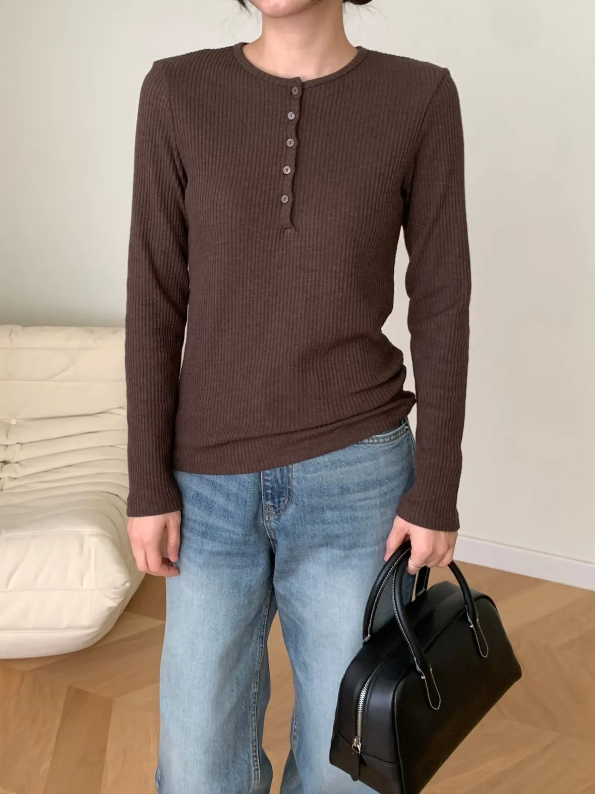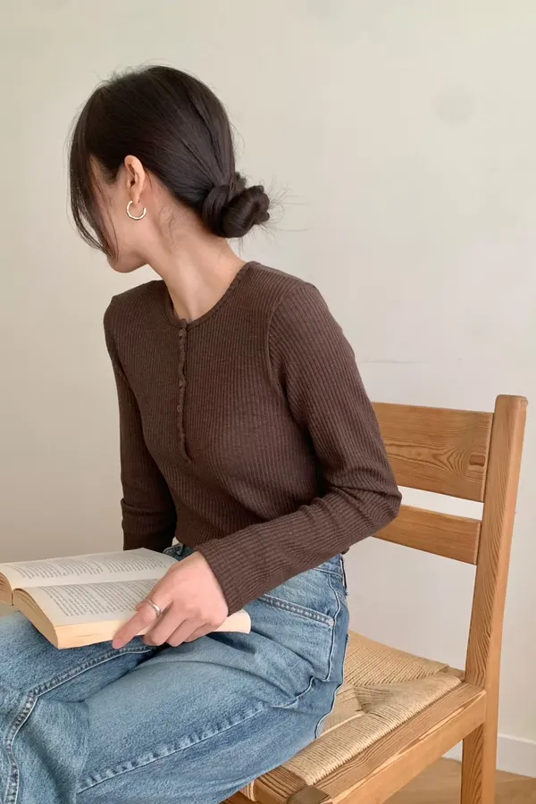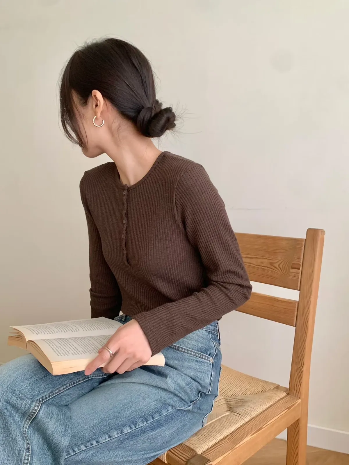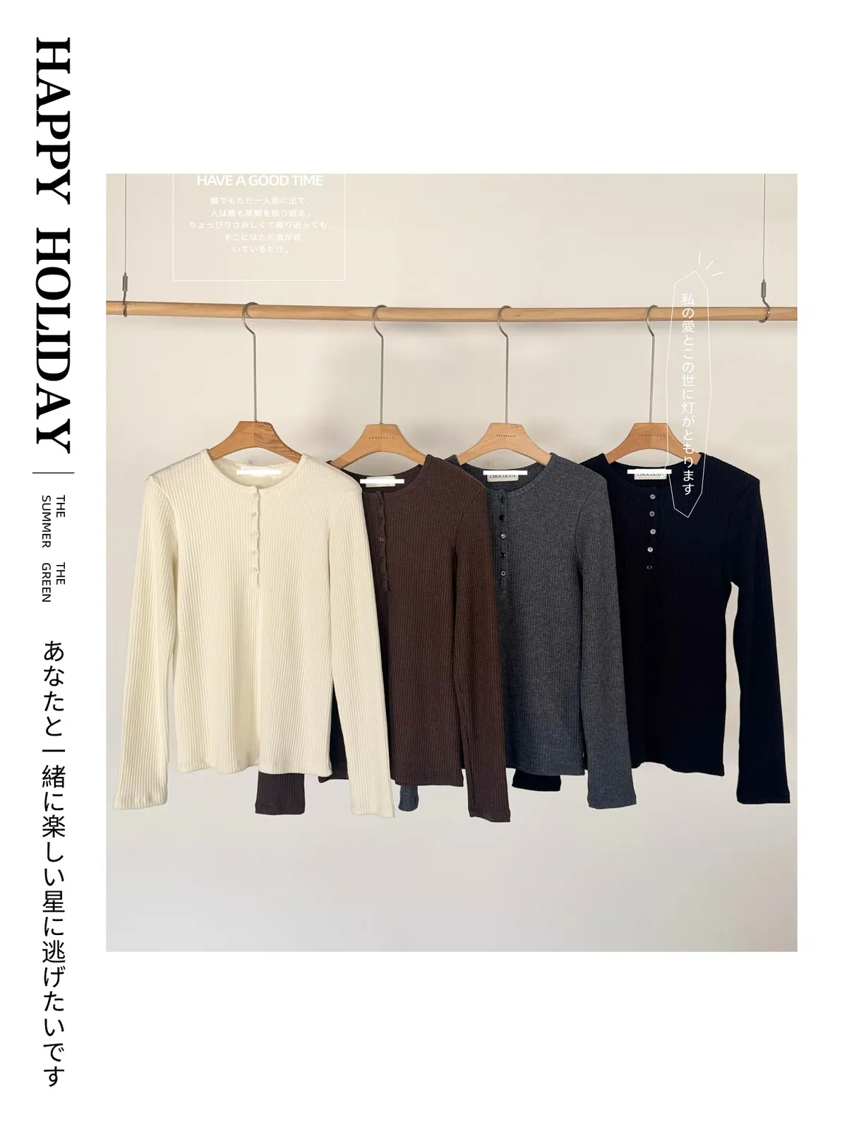 A22 1130CP百搭家棉混人造絲排釦圓領上衣4色