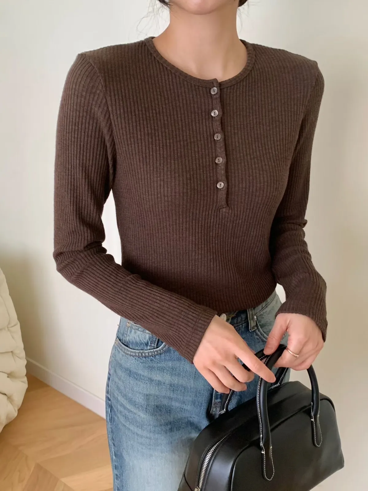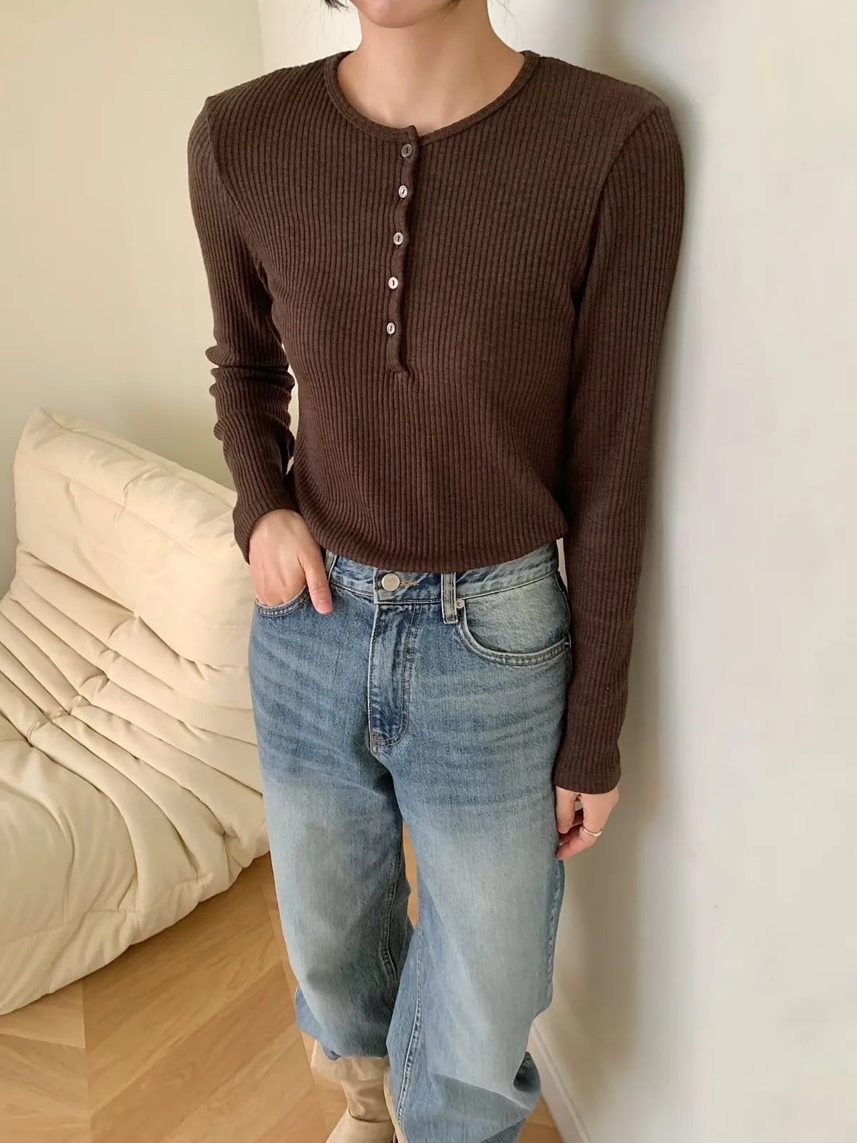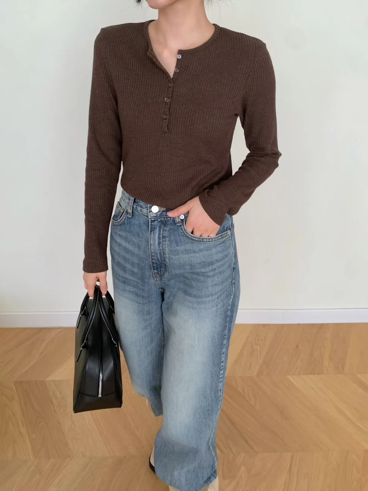 A22 1130CP百搭家棉混人造絲排釦圓領上衣4色