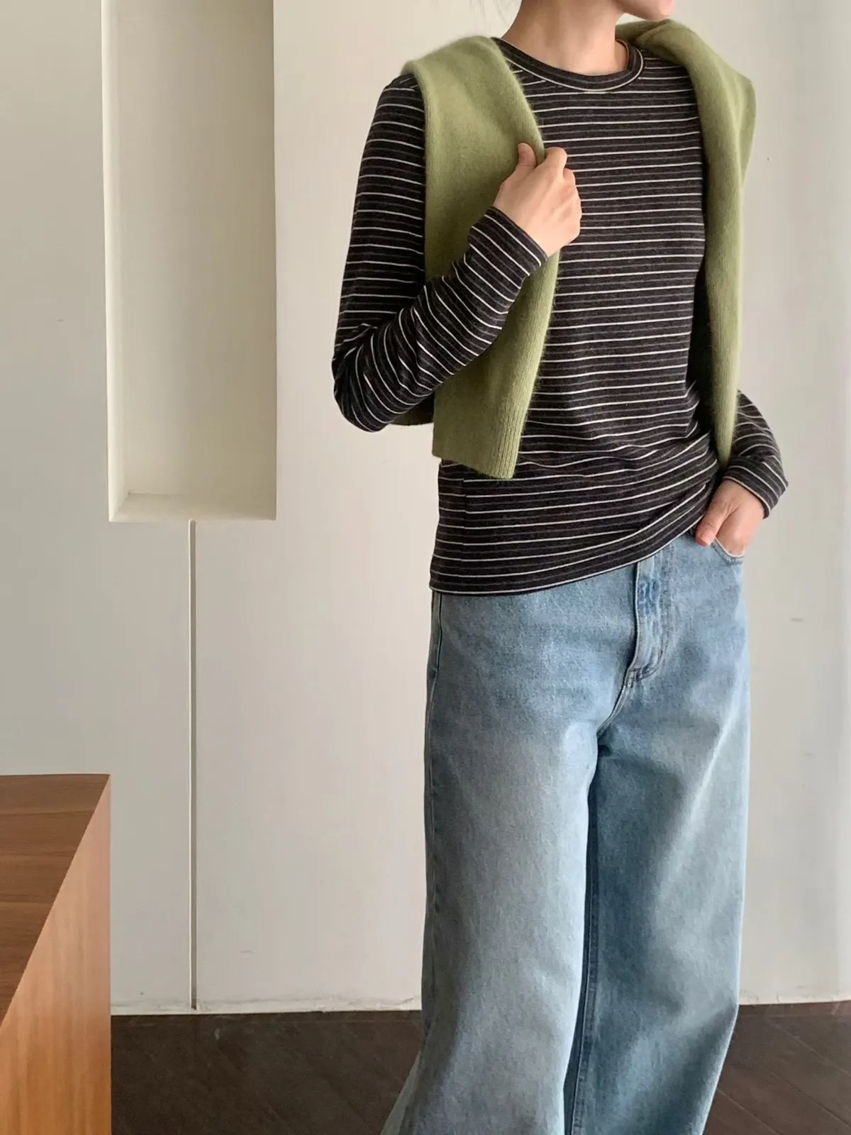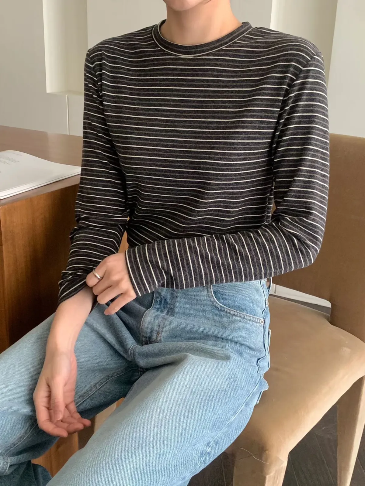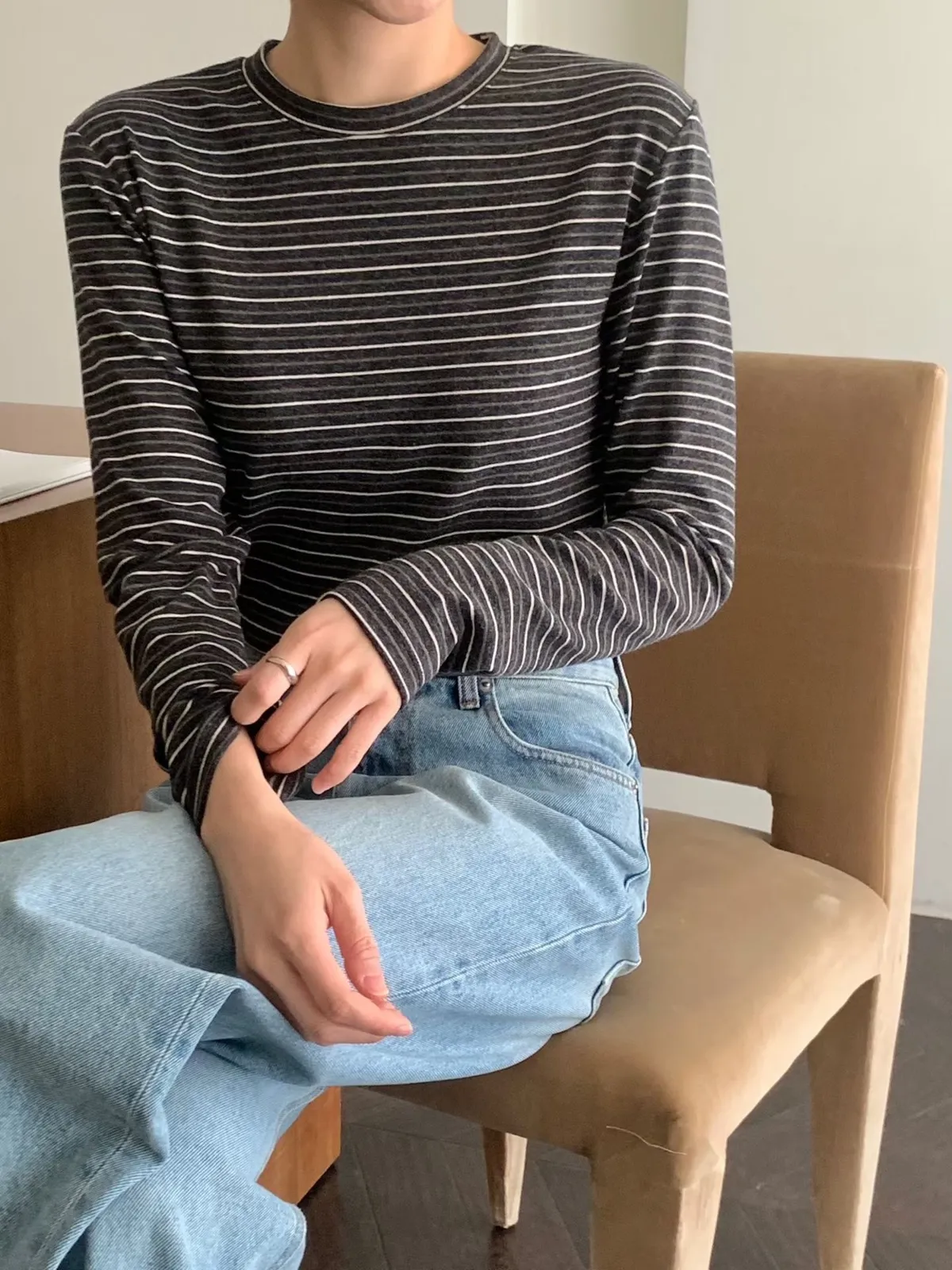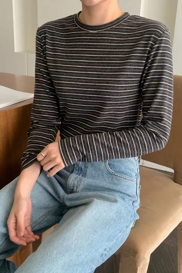 A28 1130CP百搭家橫條圓領棉質上衣3色