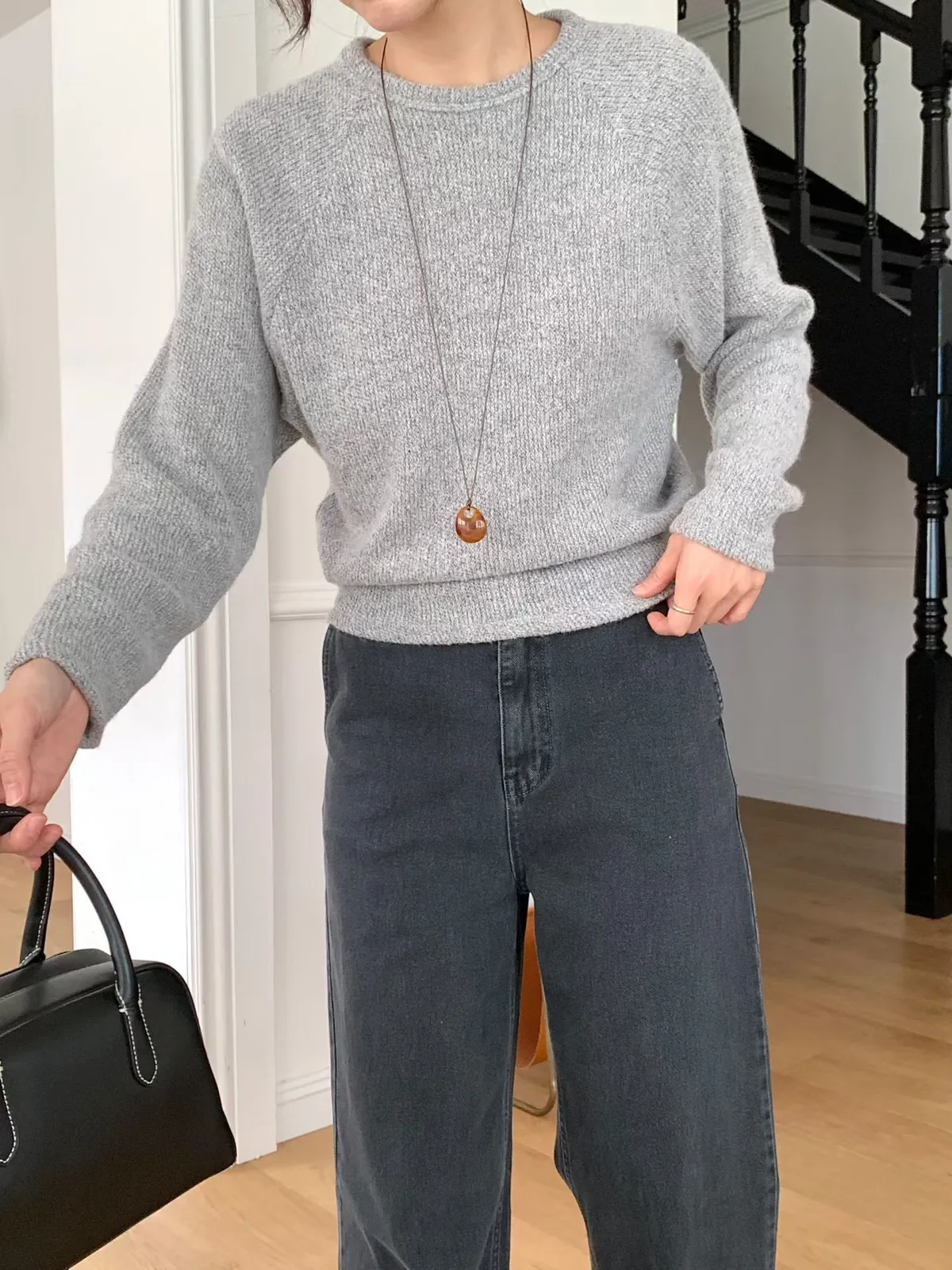 A34 1130CP百搭家壓克力混尼龍圓領針織毛衣4色