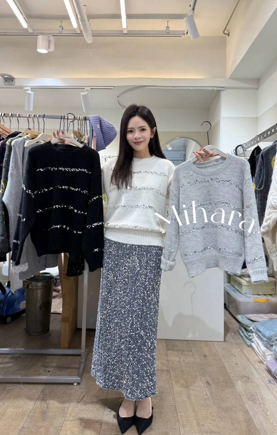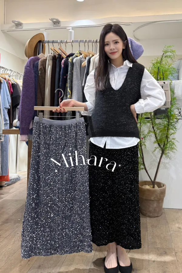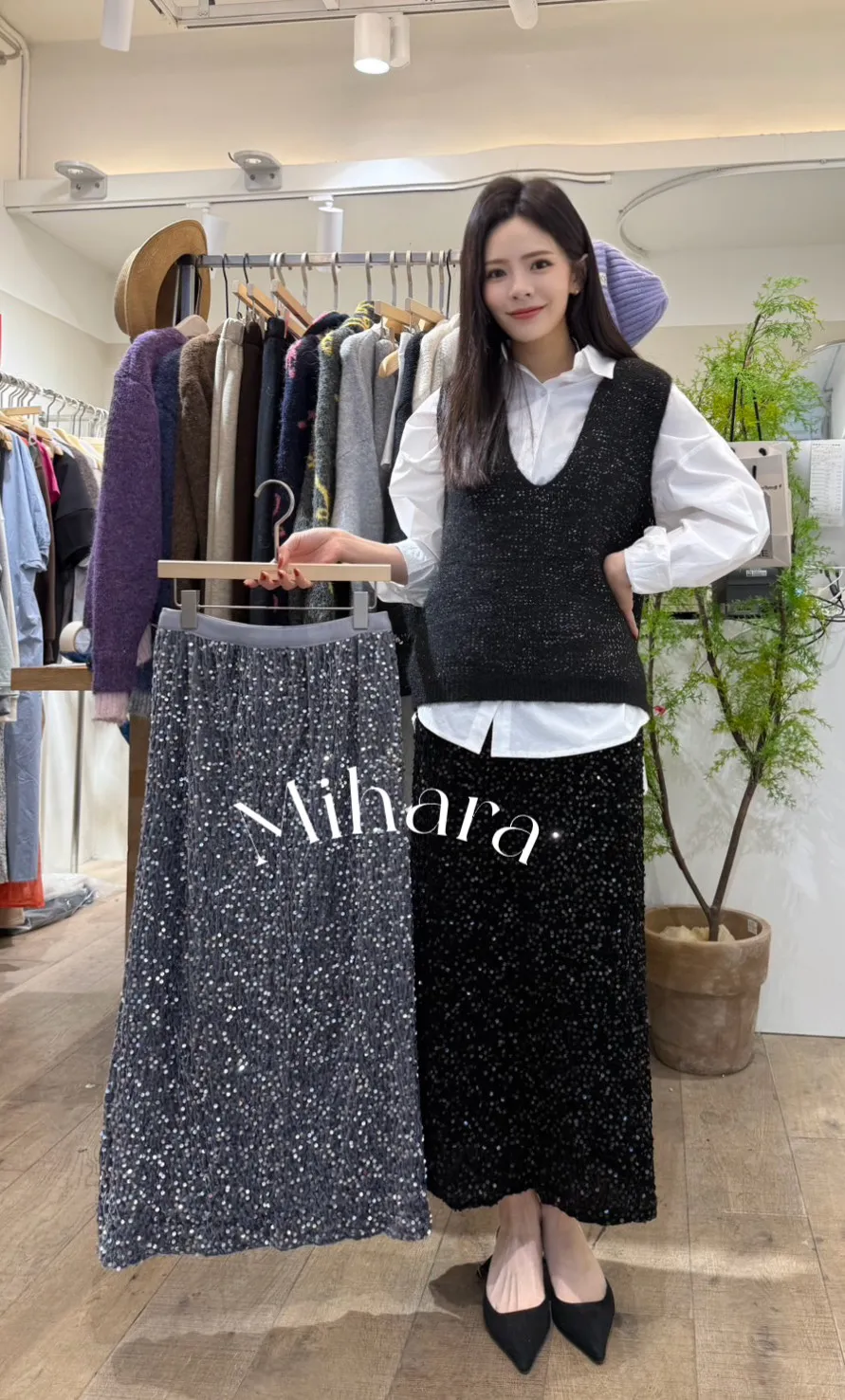 A38 1201許願家後開衩亮片H字針織半裙2色
