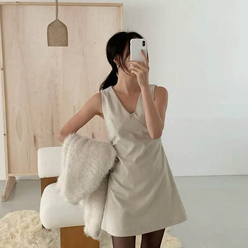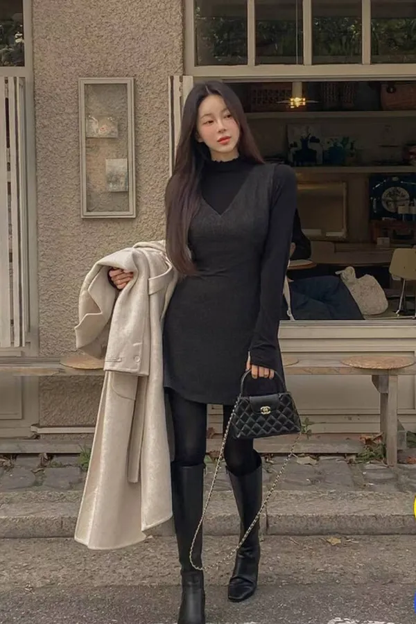 C73V領後束腰設計短洋裝
