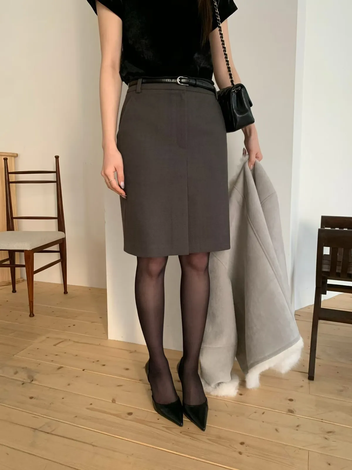 C125公主家西裝口袋窄裙3色(S/M)