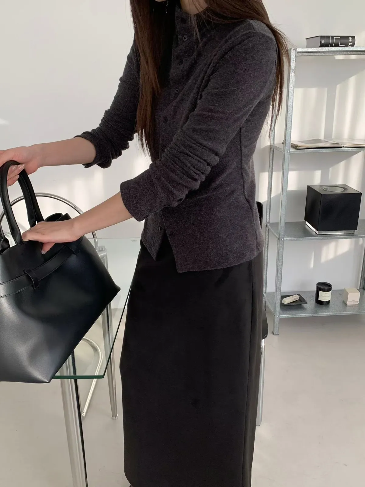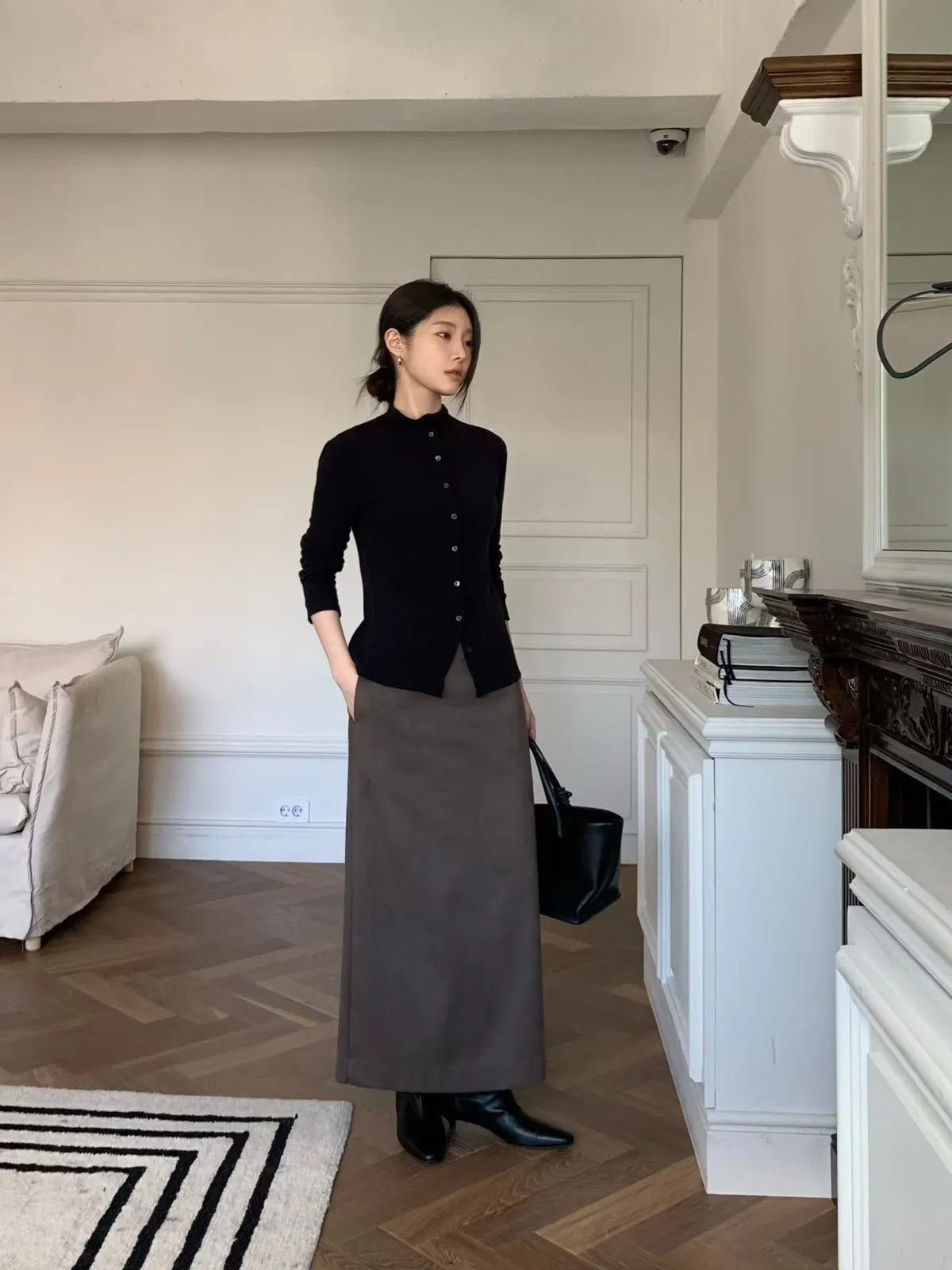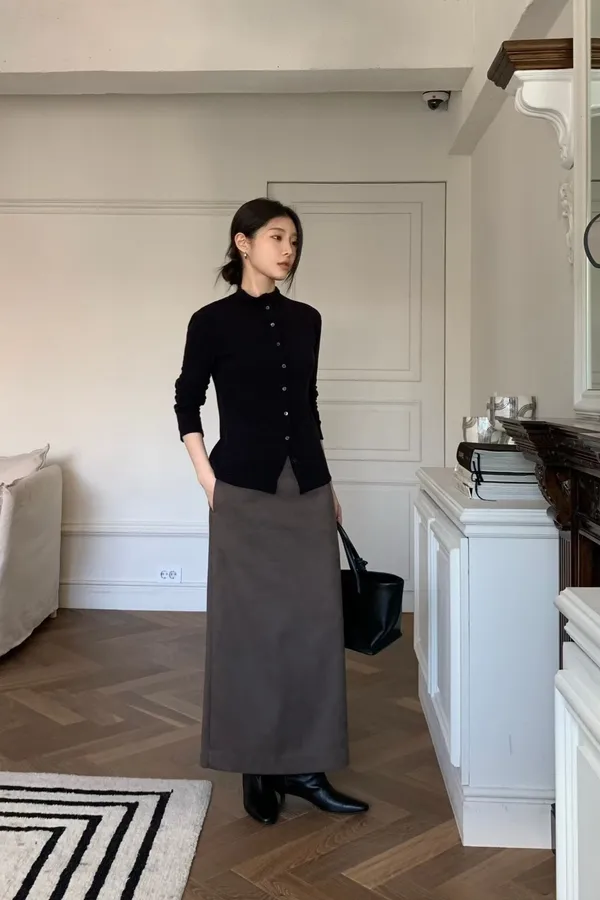 C105(推)公主家麂皮後下擺開叉裙2色(S/M)