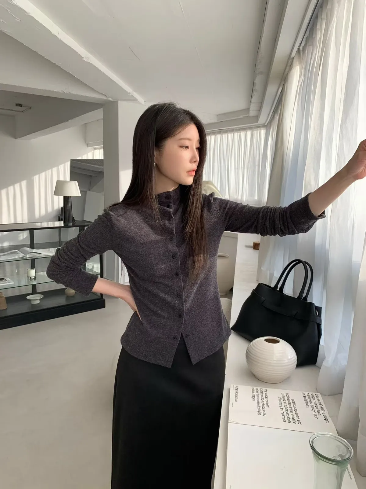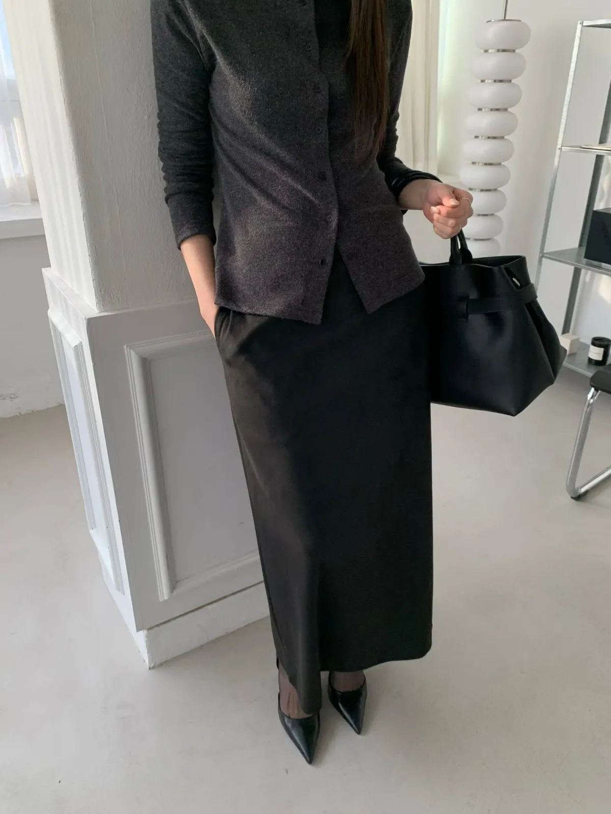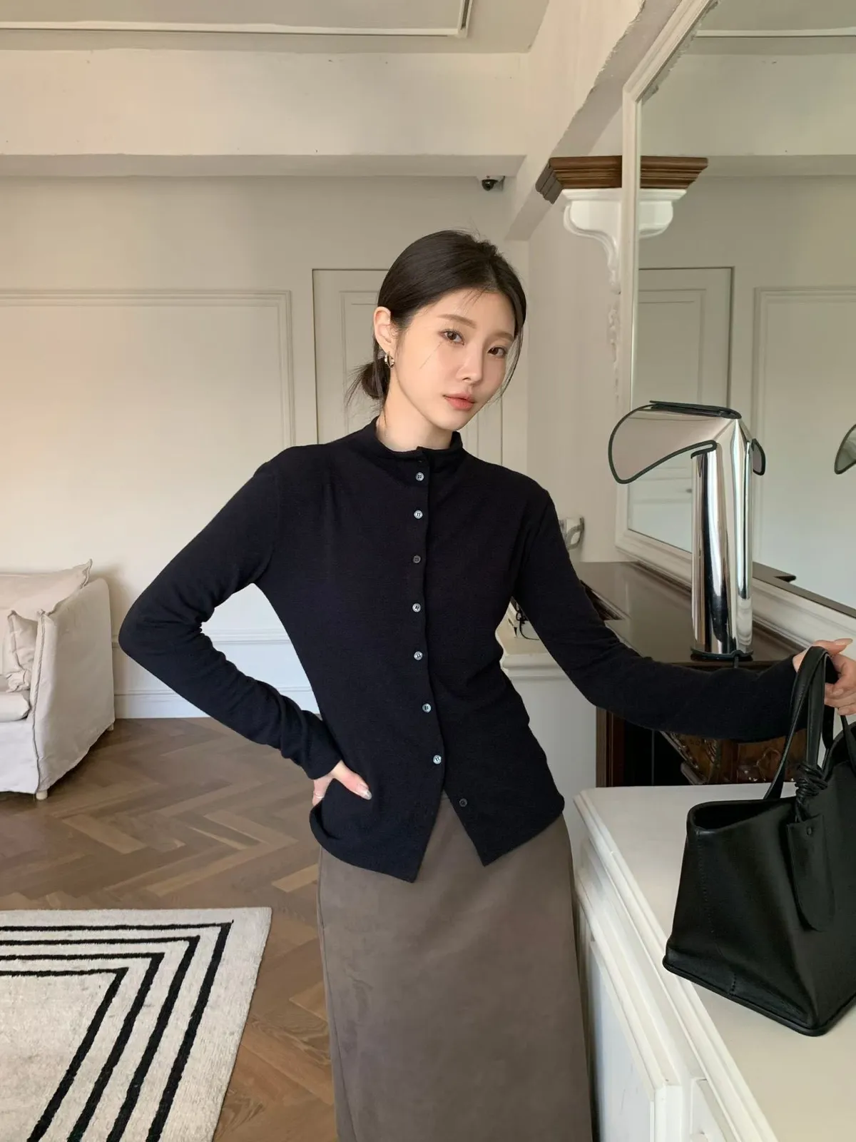 C105(推)公主家麂皮後下擺開叉裙2色(S/M)