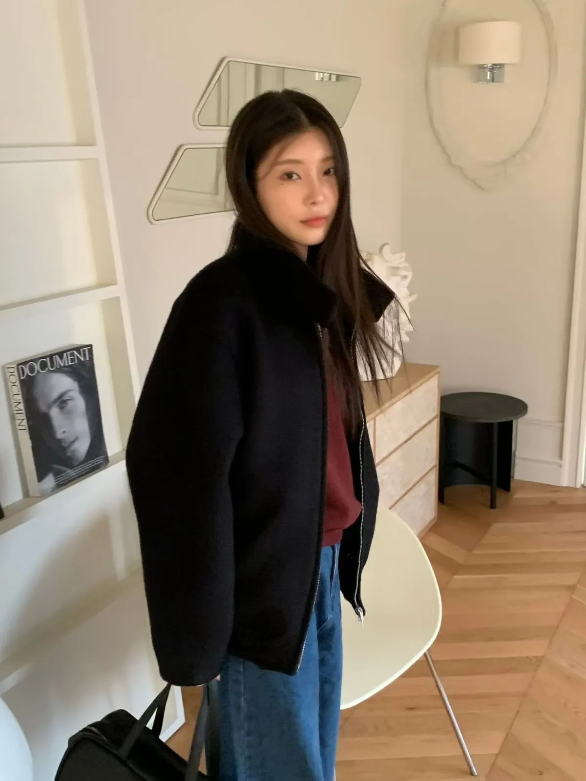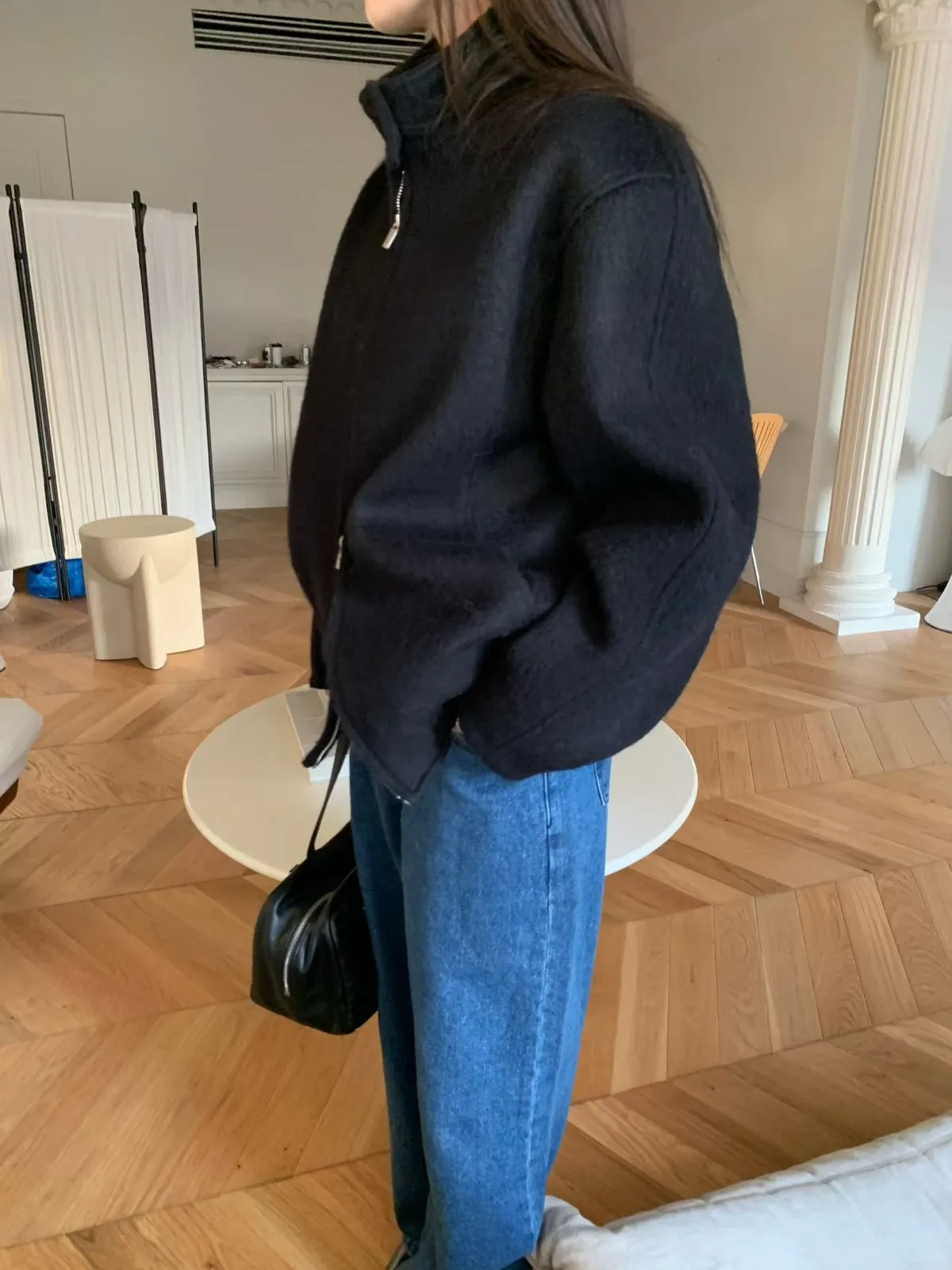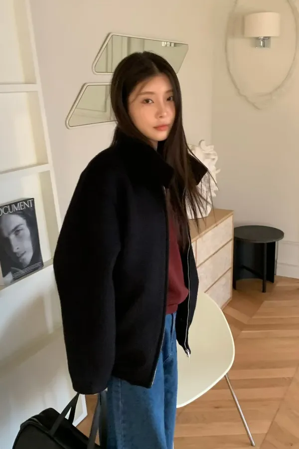 C101公主立領家羊毛/羊駝毛混紡拉鏈外套2色