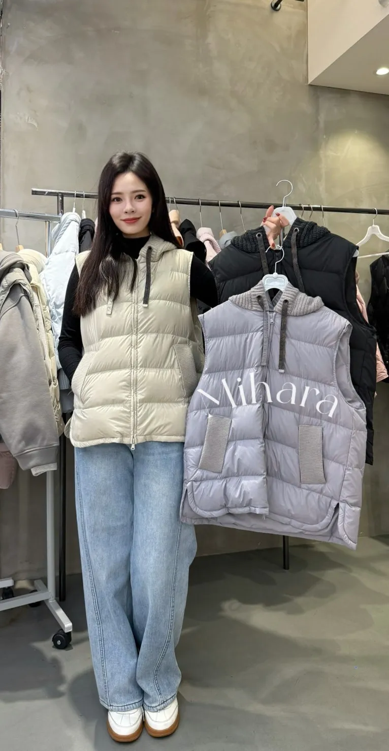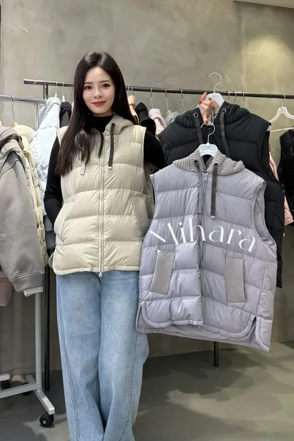 A6 1204高檔W外套家側開衩針織帽鵝絨背心3色