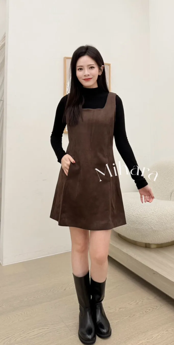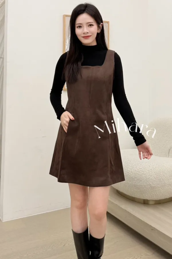 A35 1204(限量特)高檔家寬肩帶方領麂皮背心洋裝
