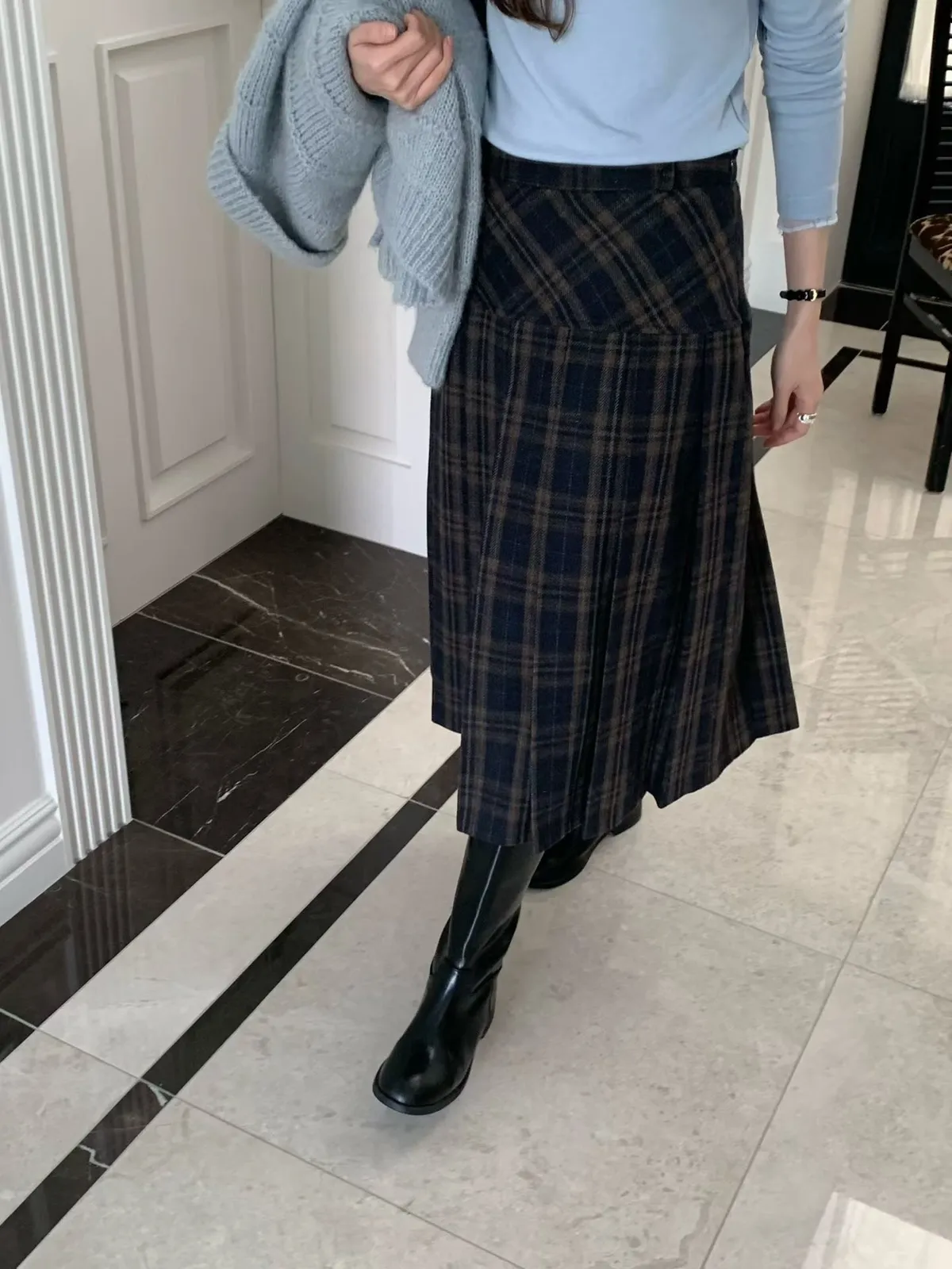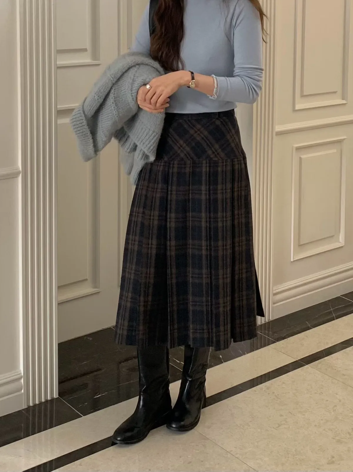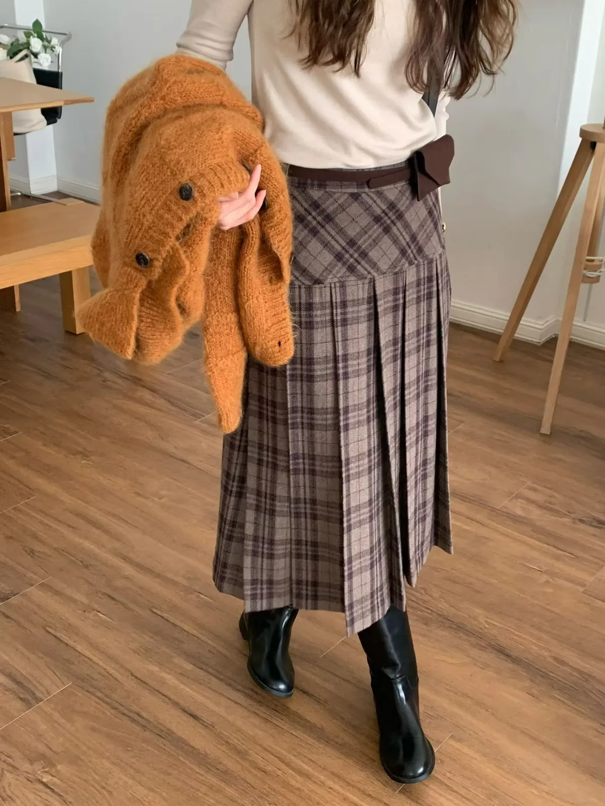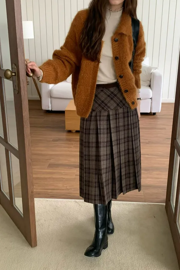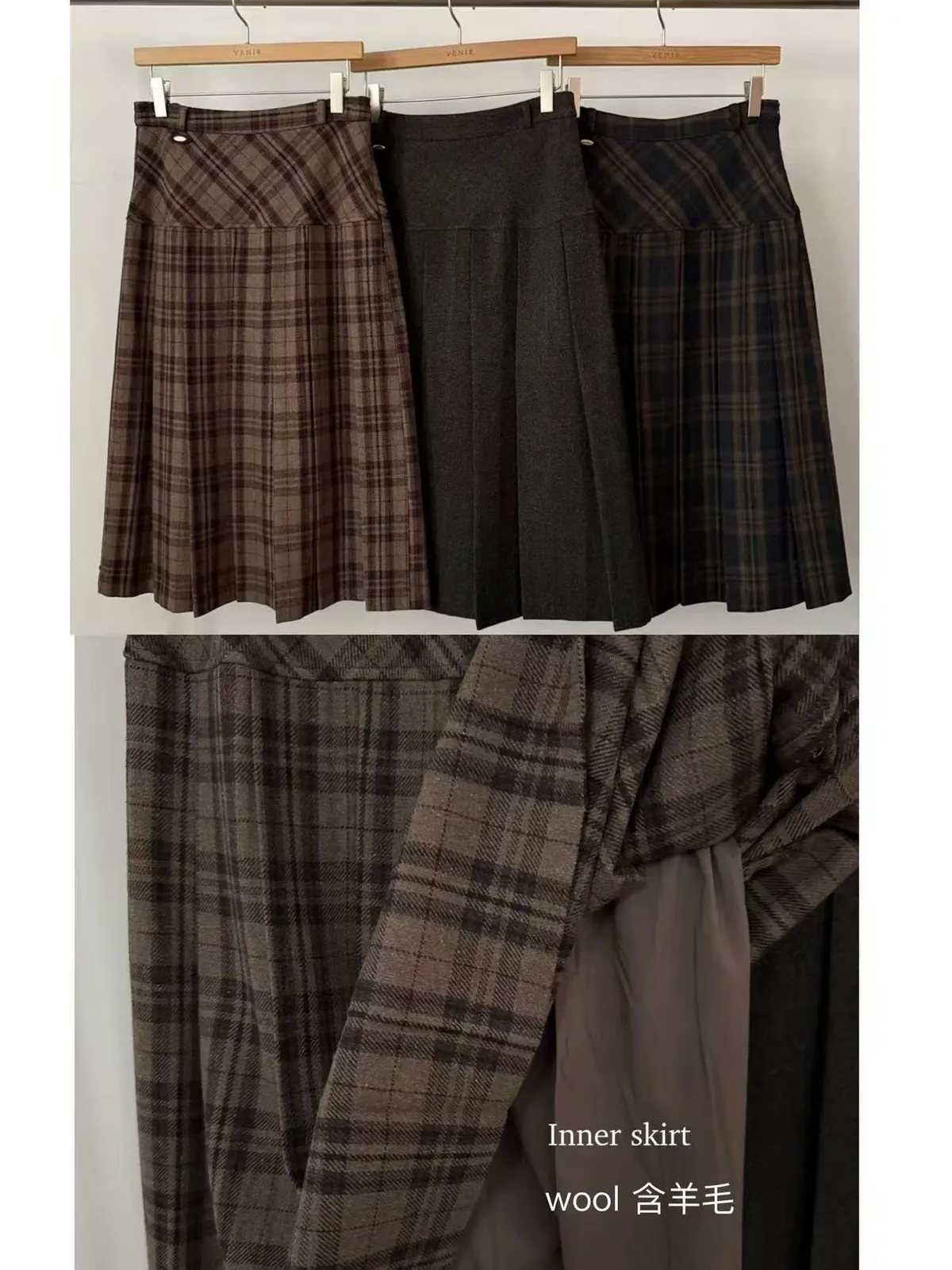 C697捲髮歐膩羊毛混紡格紋裙3色(S/M)