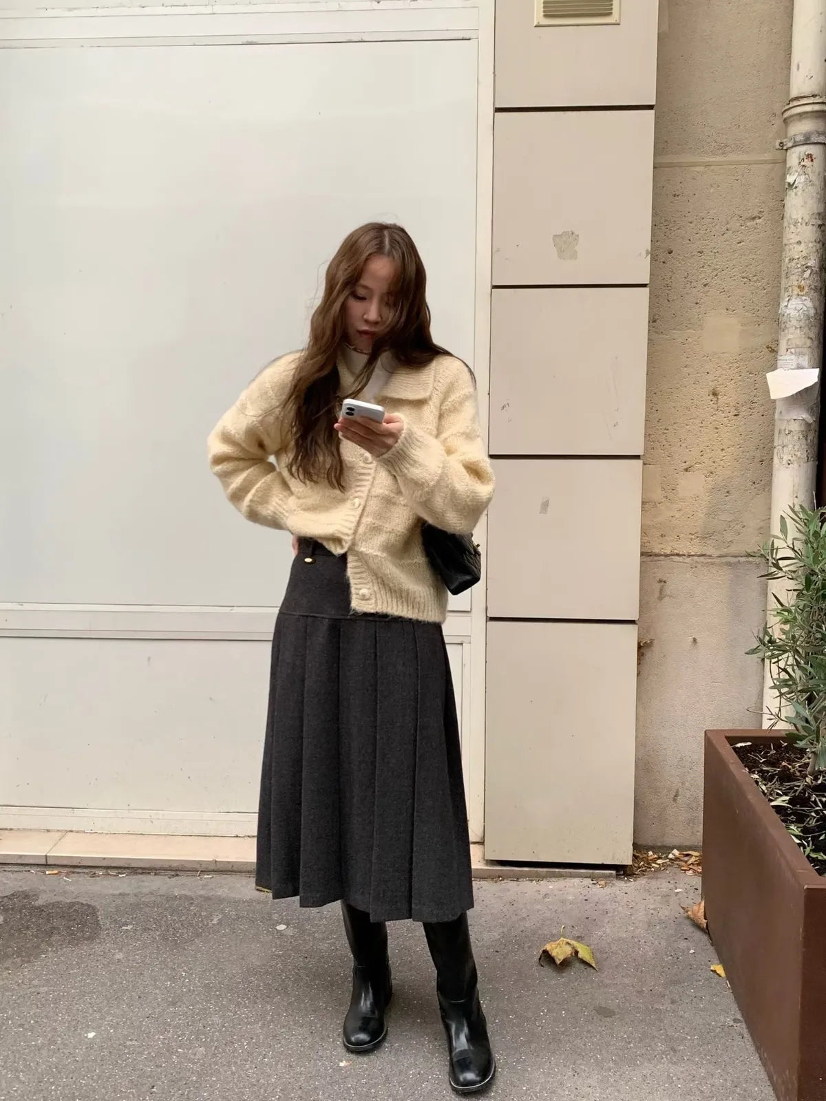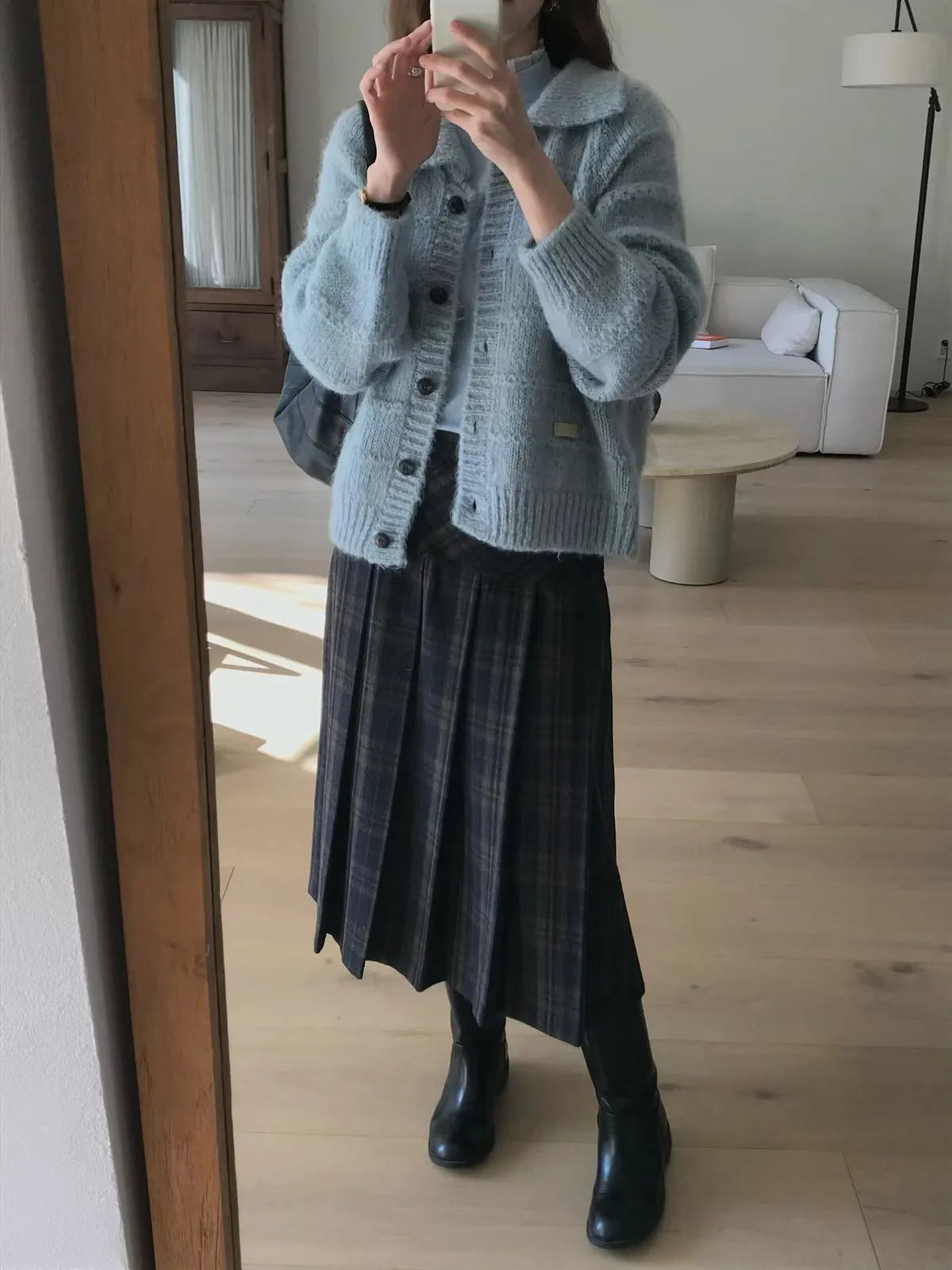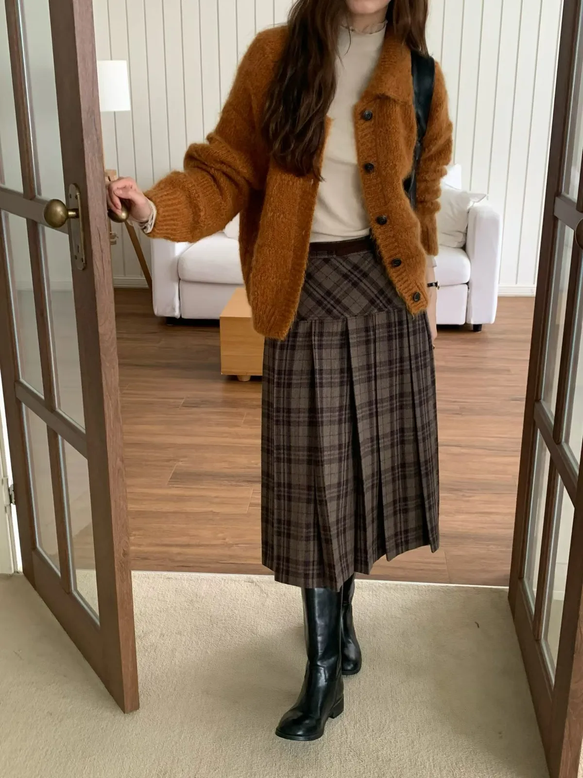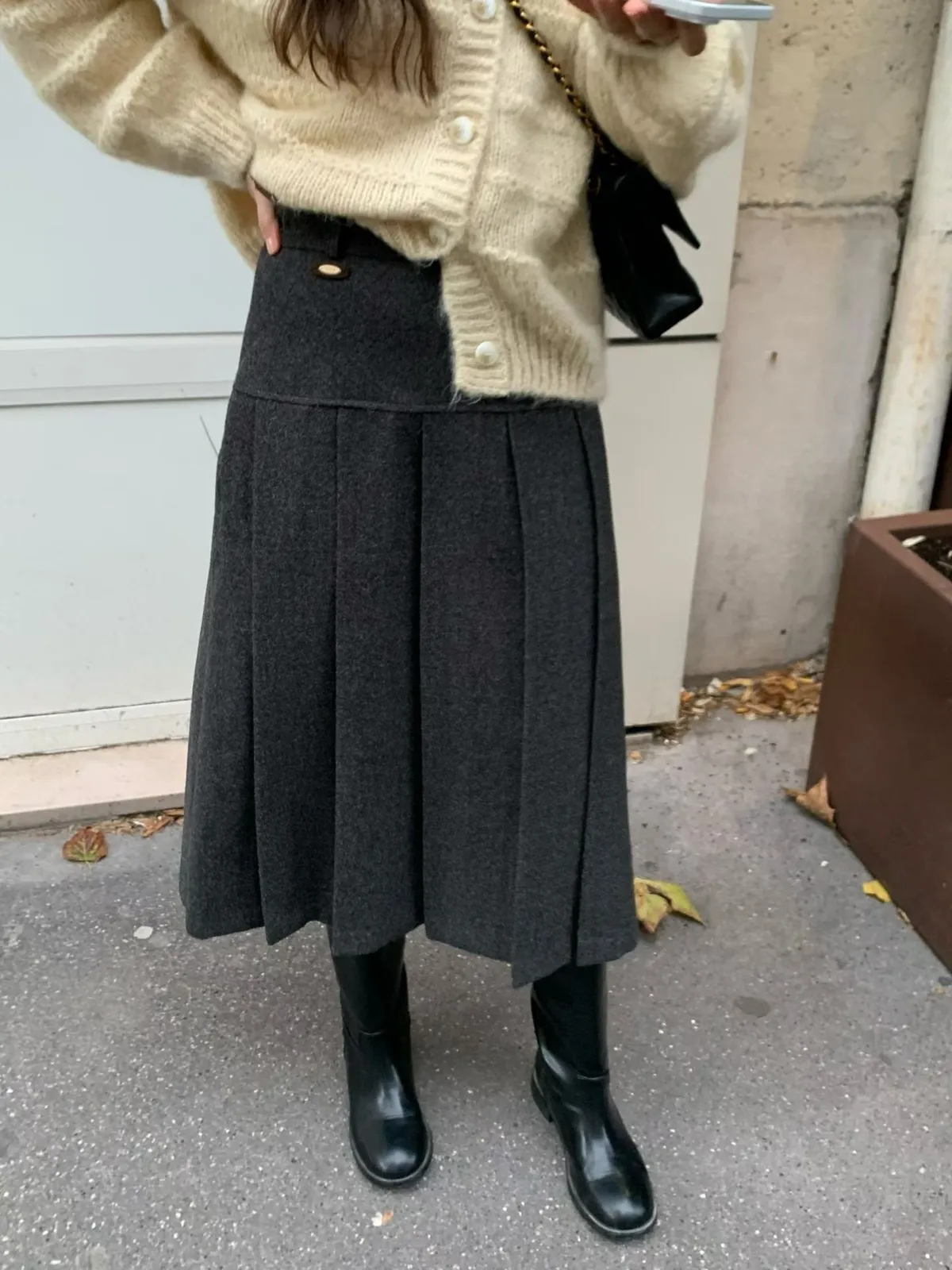 C697捲髮歐膩羊毛混紡格紋裙3色(S/M)