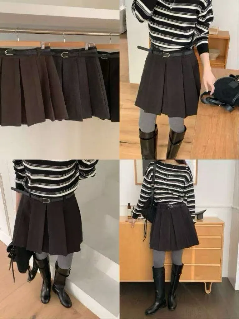 A17 1207腰帶百褶裙3色