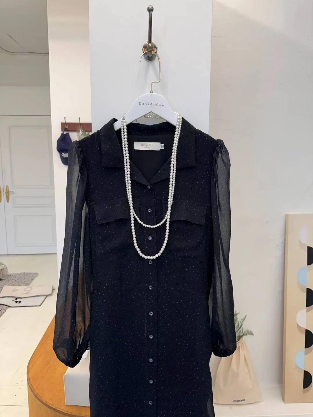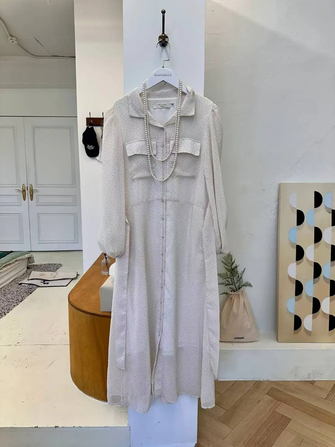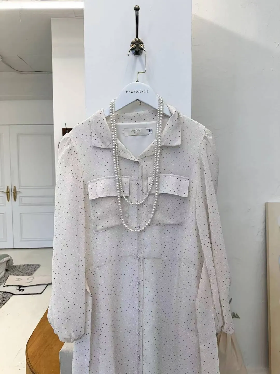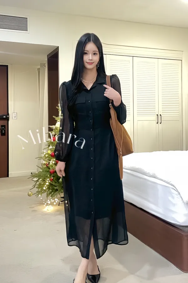 A21 1207(限時特價24H)仙女家翻領點點雪紡洋裝2色