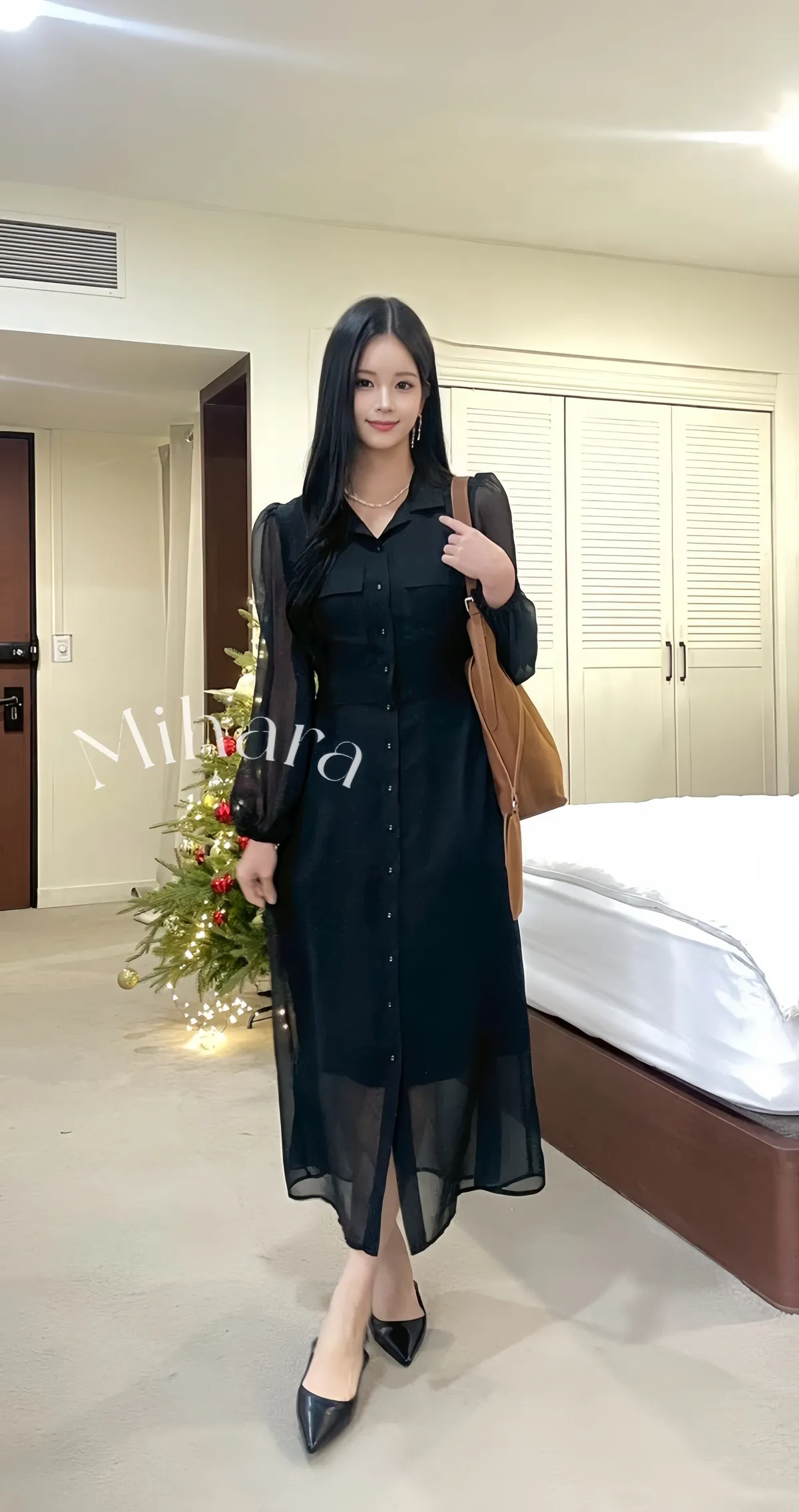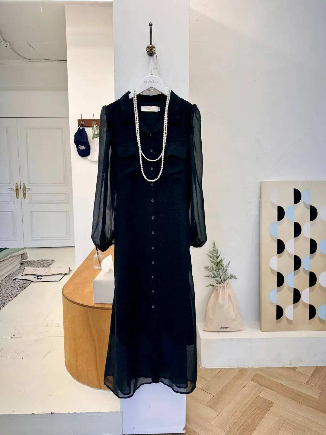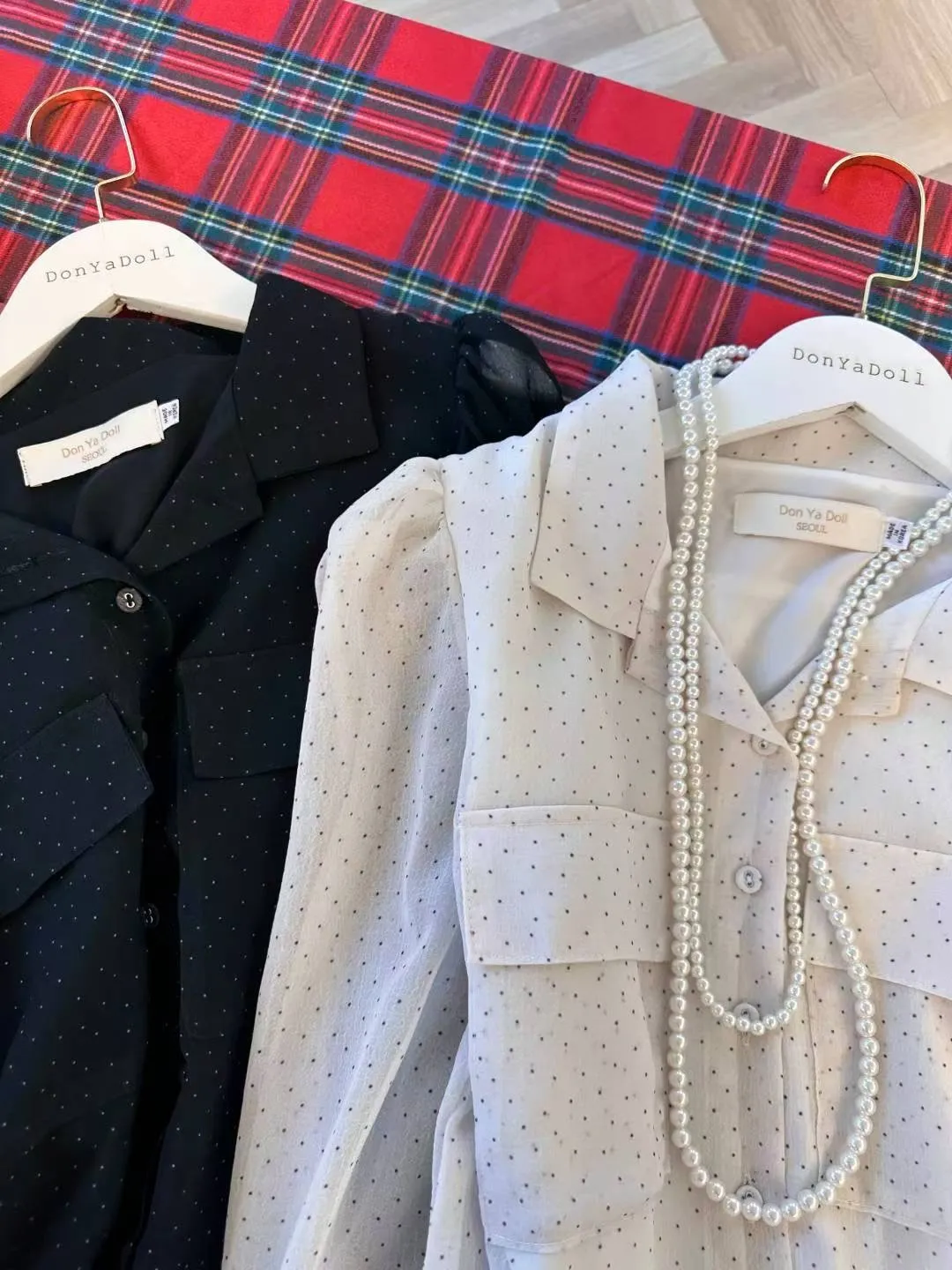 A21 1207(限時特價24H)仙女家翻領點點雪紡洋裝2色