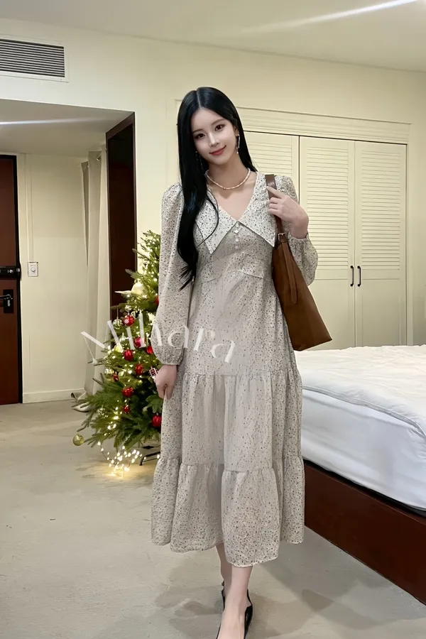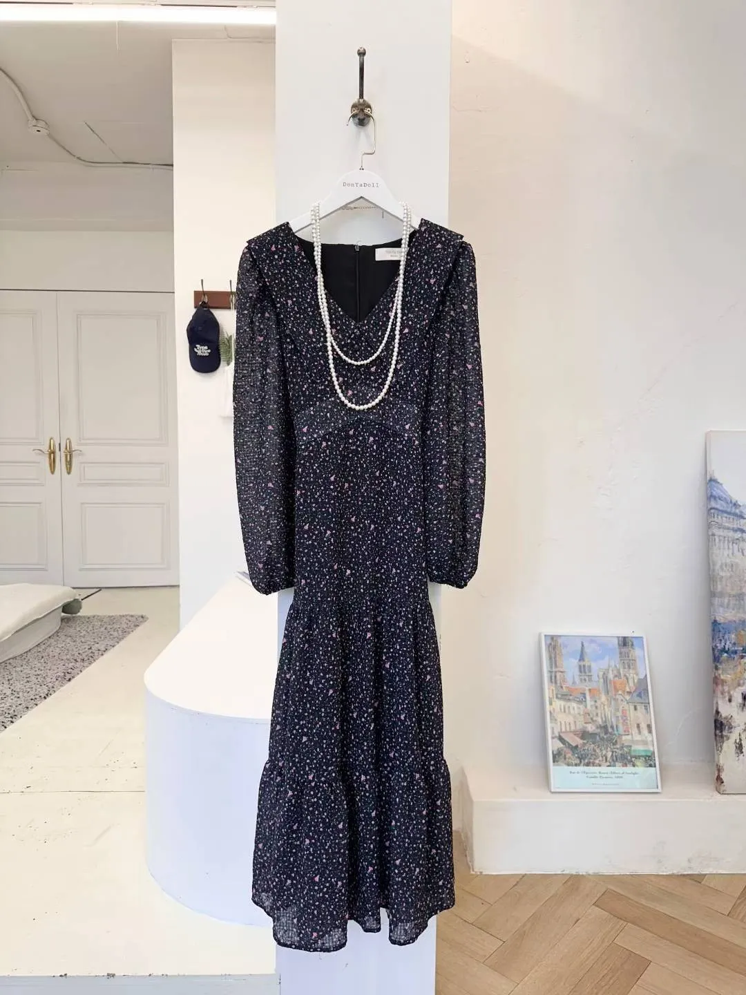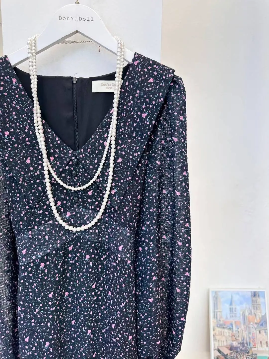 A15 1207(限時特價24H)仙女家翻領V領碎花雪紡洋裝