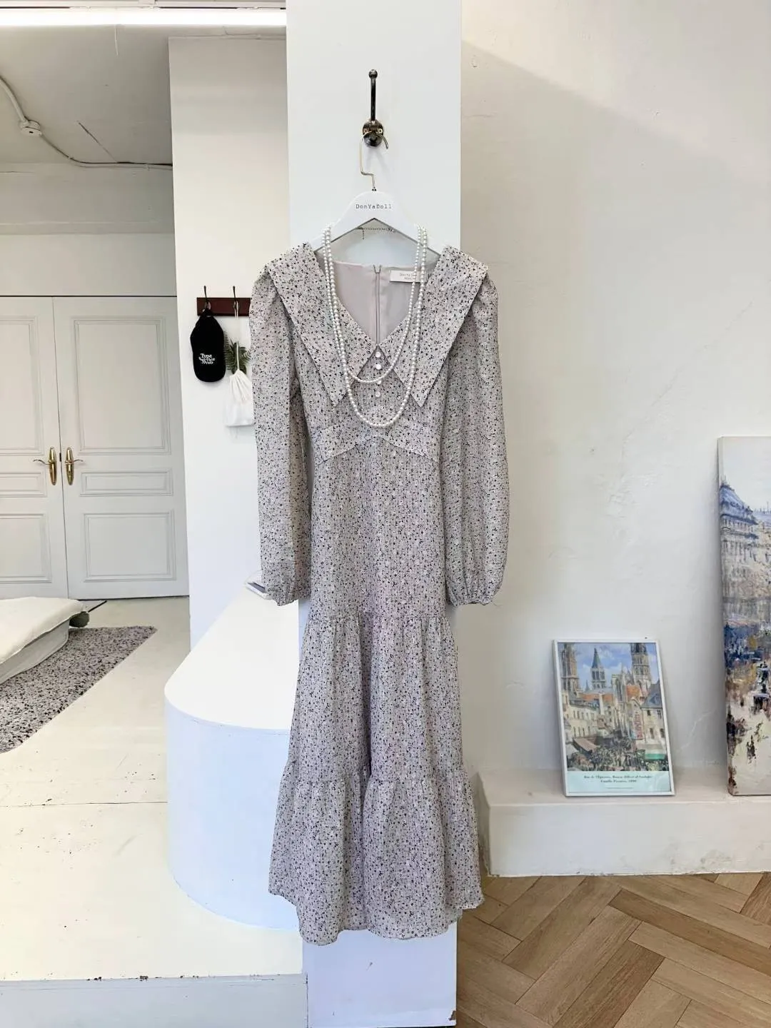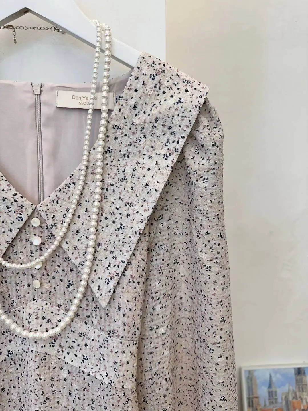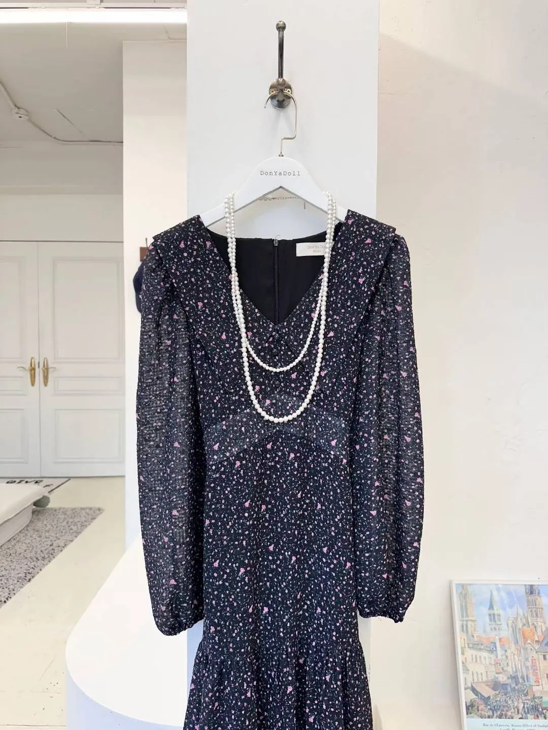 A15 1207(限時特價24H)仙女家翻領V領碎花雪紡洋裝