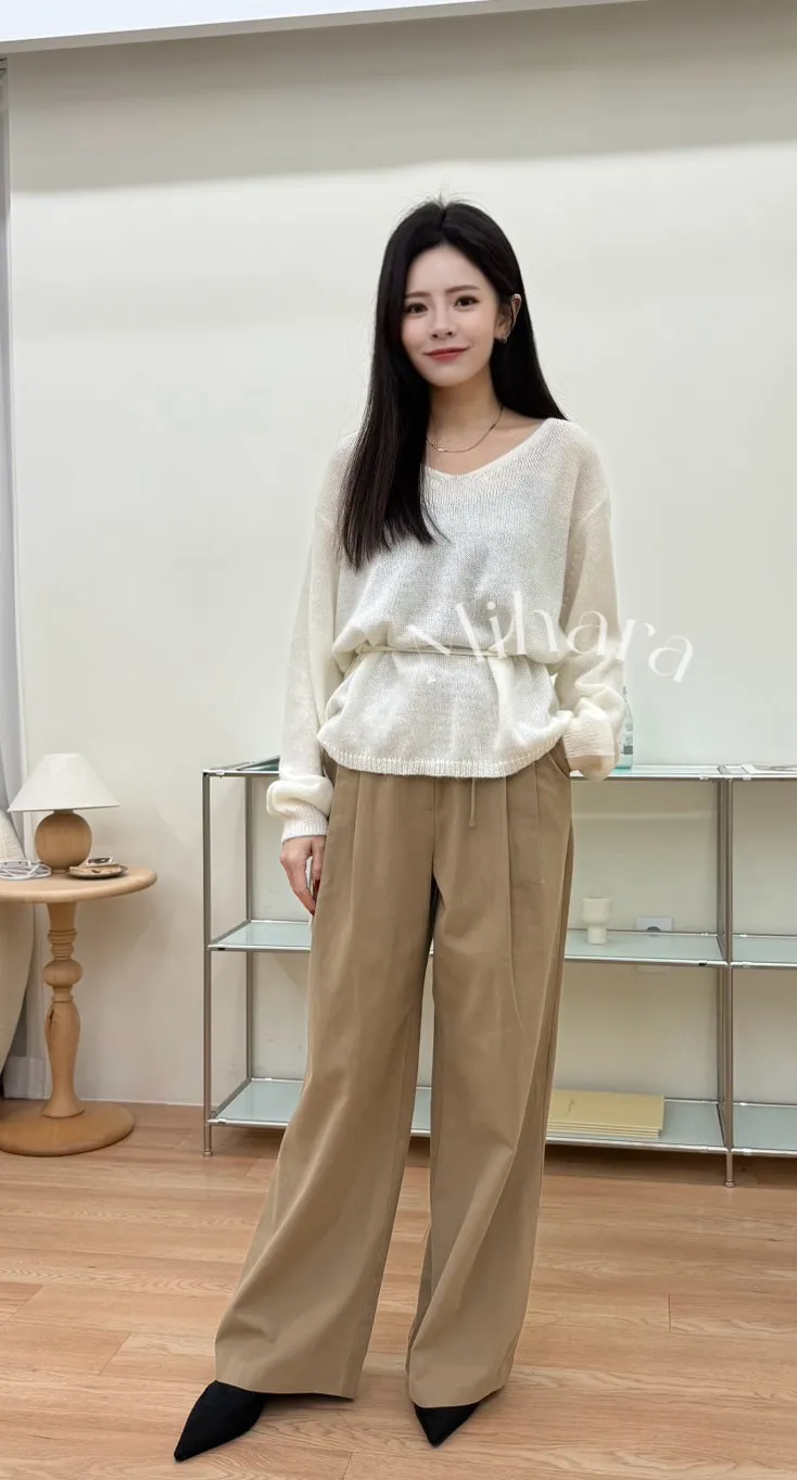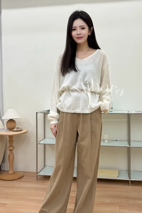 A8 1208(限量特)高檔拱門家馬海毛混羊毛V領針織毛衣附綁帶