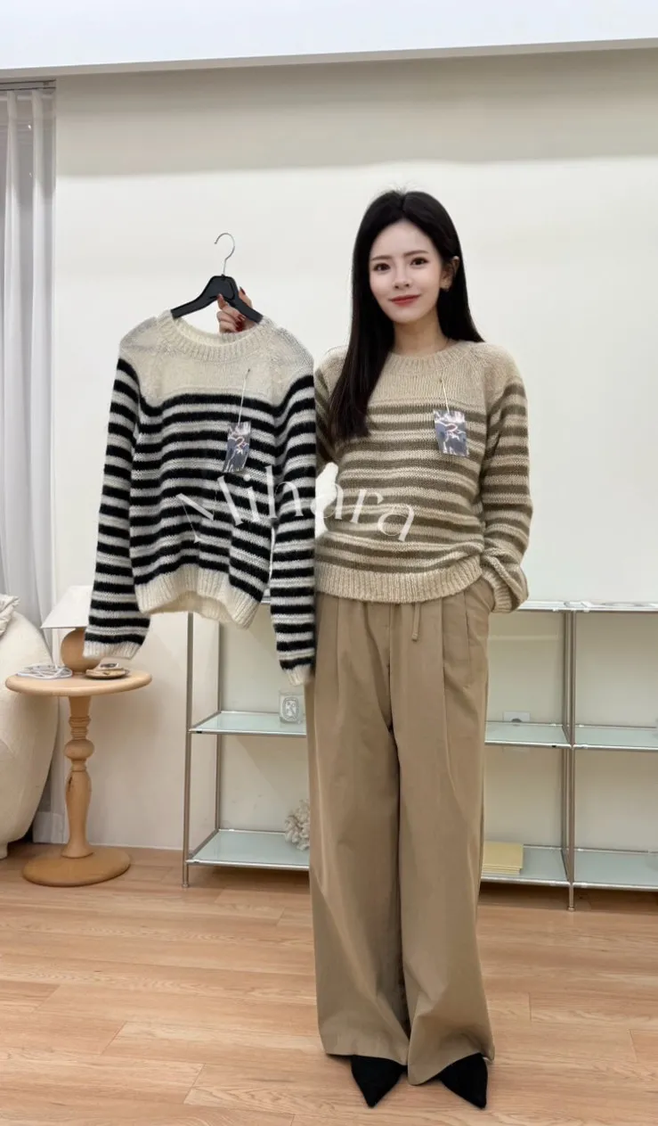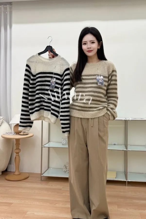 A10 1208(限量特)高檔拱門家橫條圓領寶寶馬海毛40%針織毛衣2色