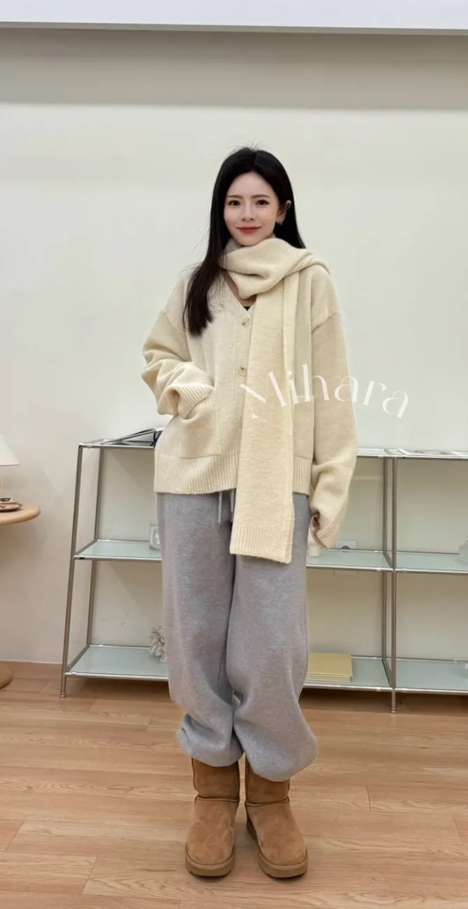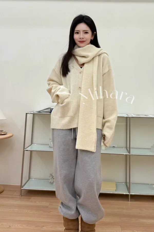 A21 1208(限量特)高檔拱門家混羊毛V領針織外套附圍巾