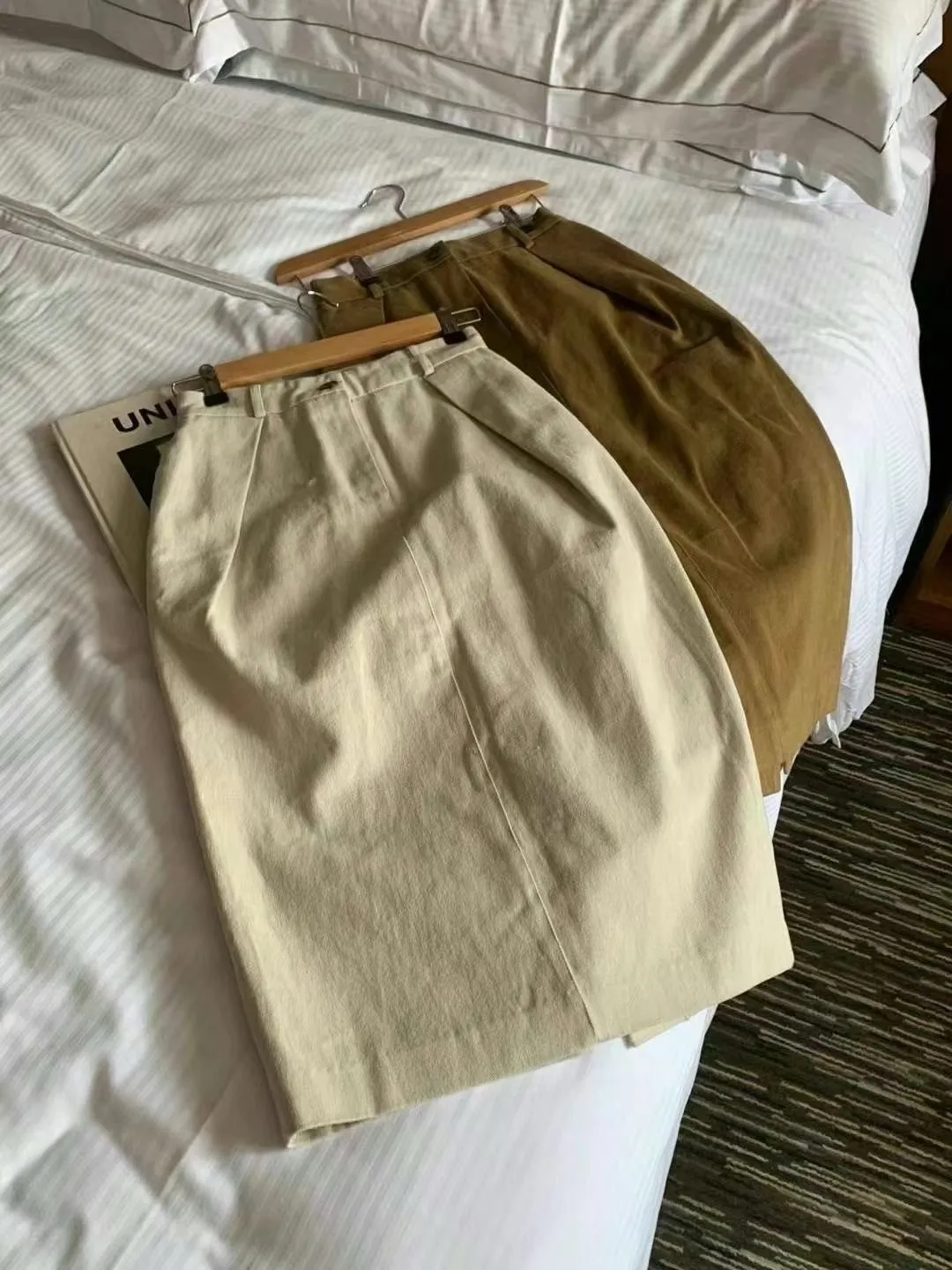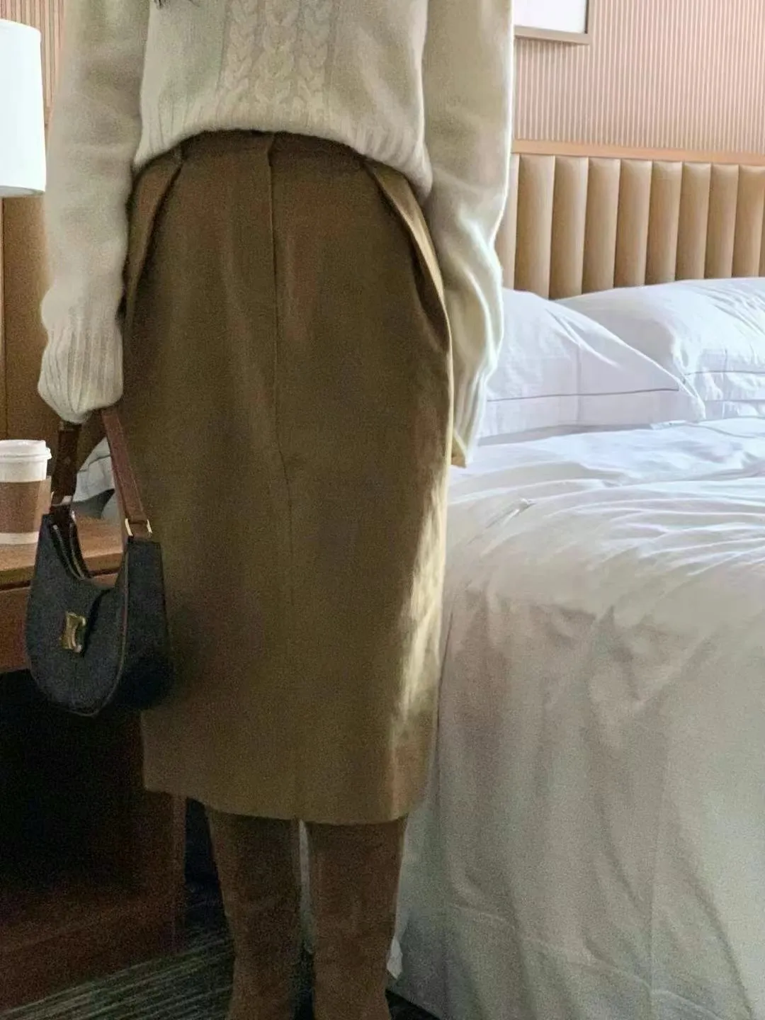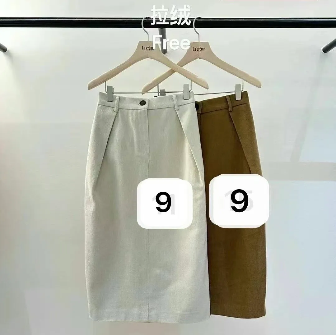 A28 1208(限量特)高檔櫃彈性腰圍後開衩拉絨半裙2色