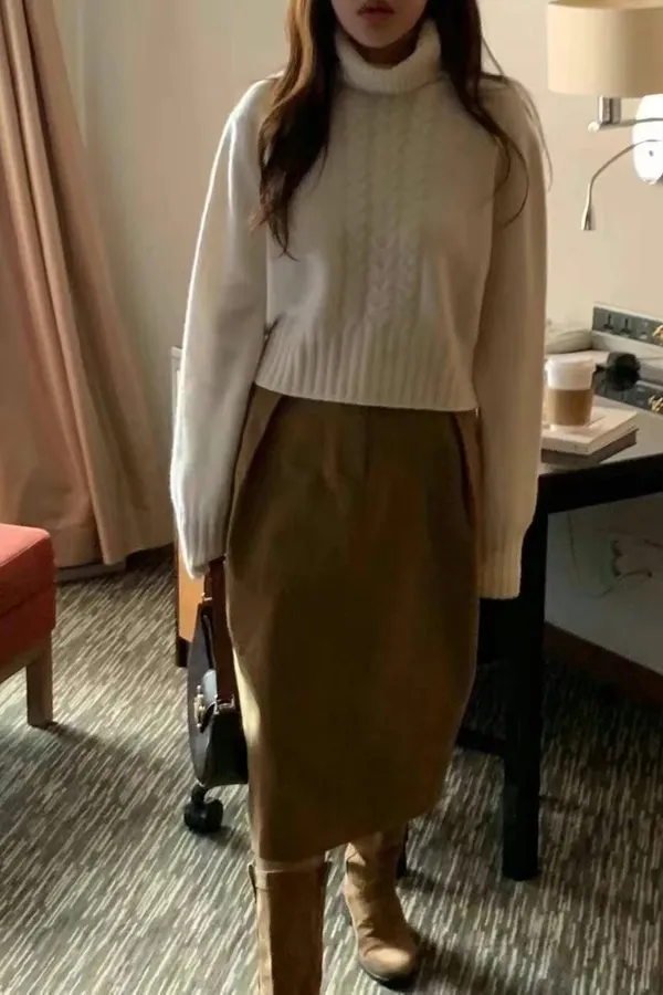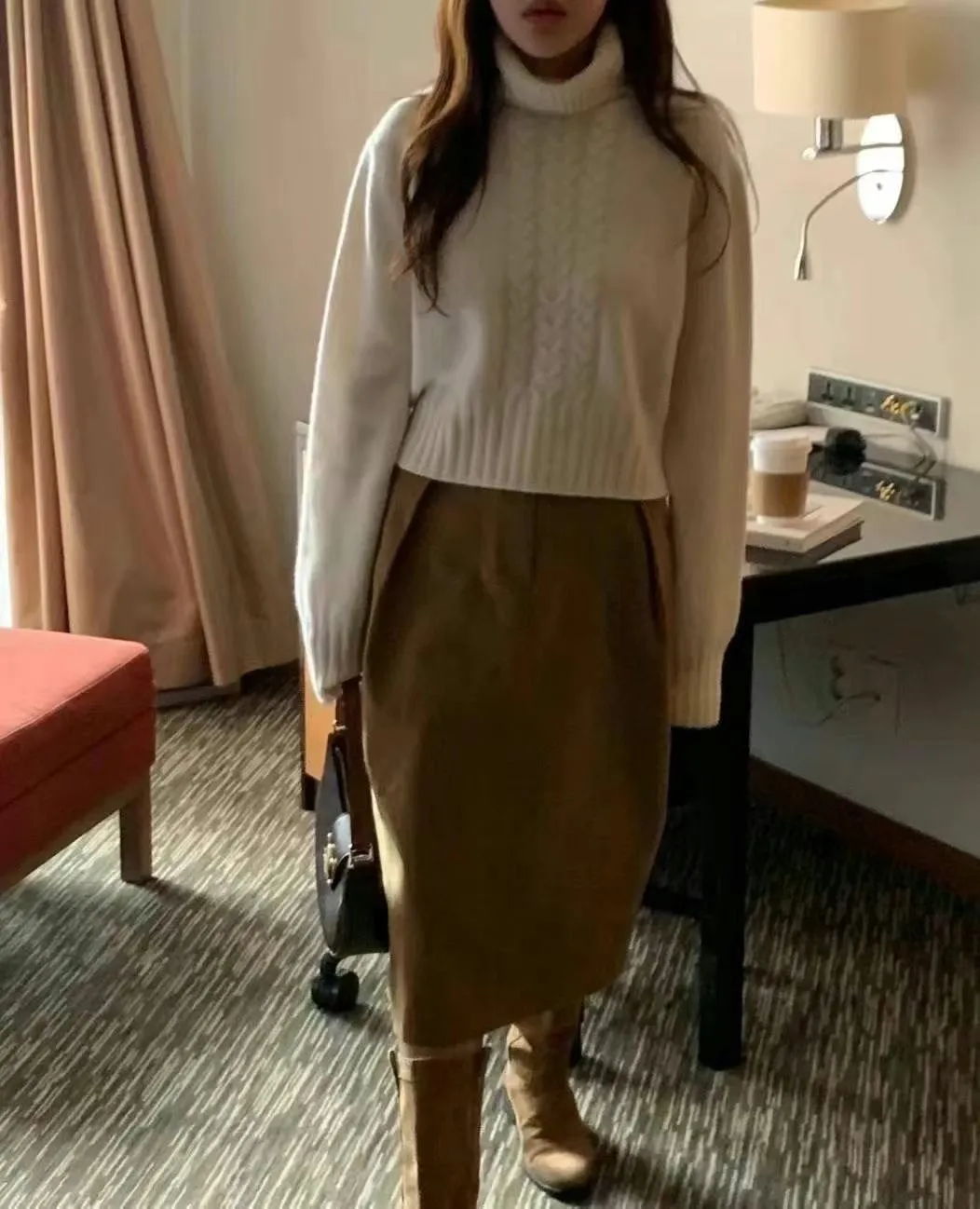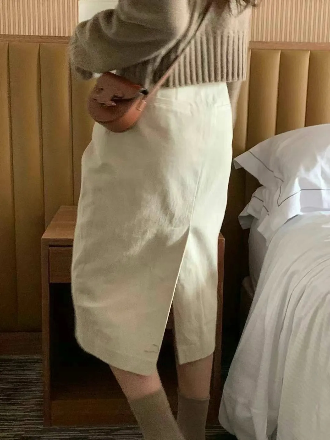 A28 1208(限量特)高檔櫃彈性腰圍後開衩拉絨半裙2色