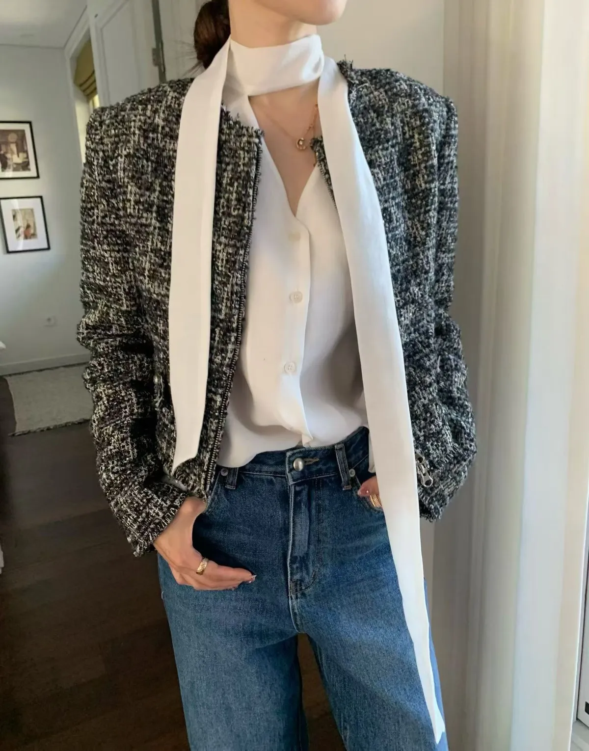 A33 1208(限量特)高檔櫃兩面穿排釦領巾V領羊毛混天絲上衣
