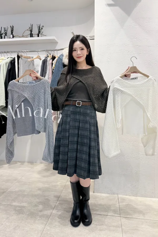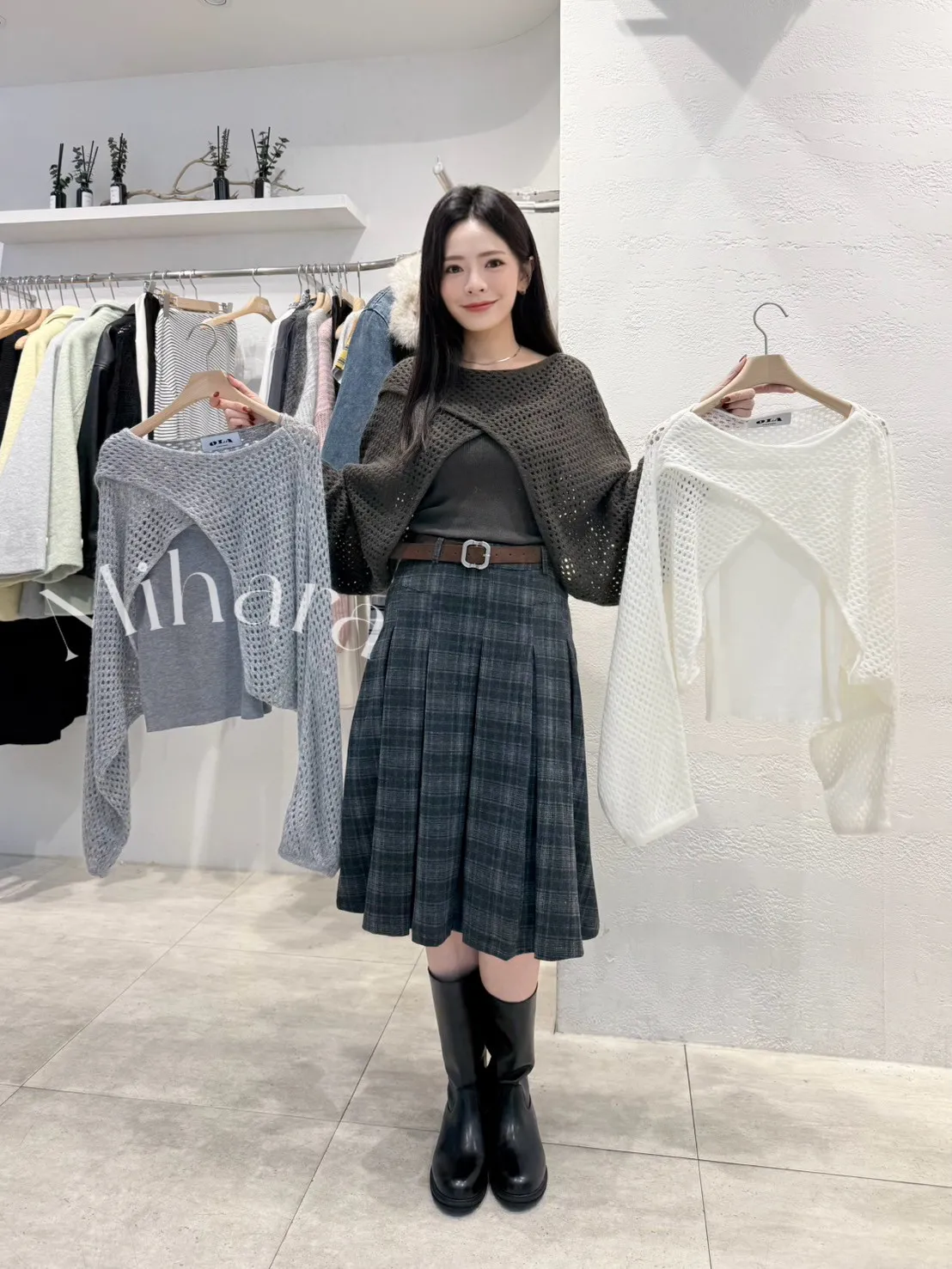 A40 1209許願家兩件式交叉圓領洞洞針織罩衫+細肩帶針織背心3色