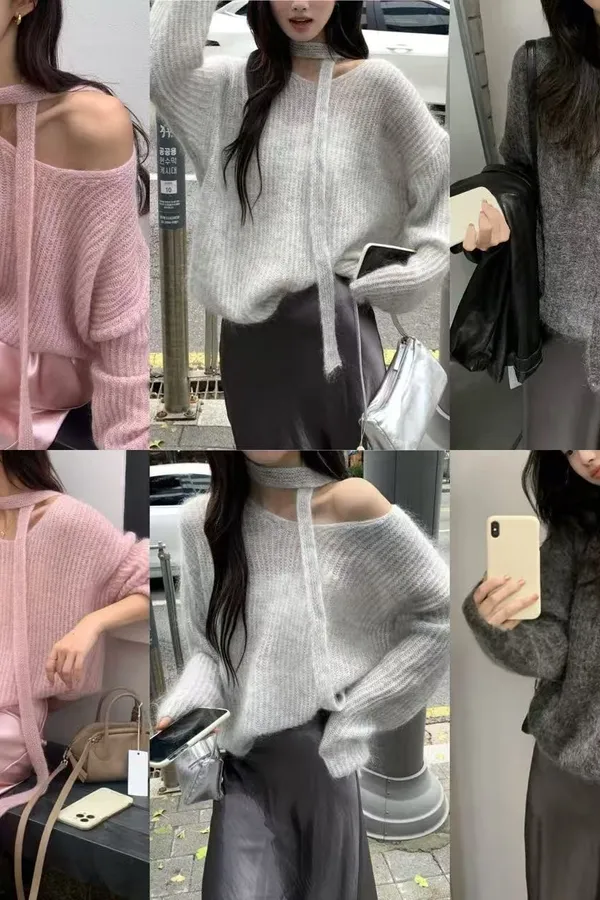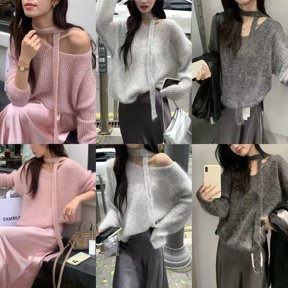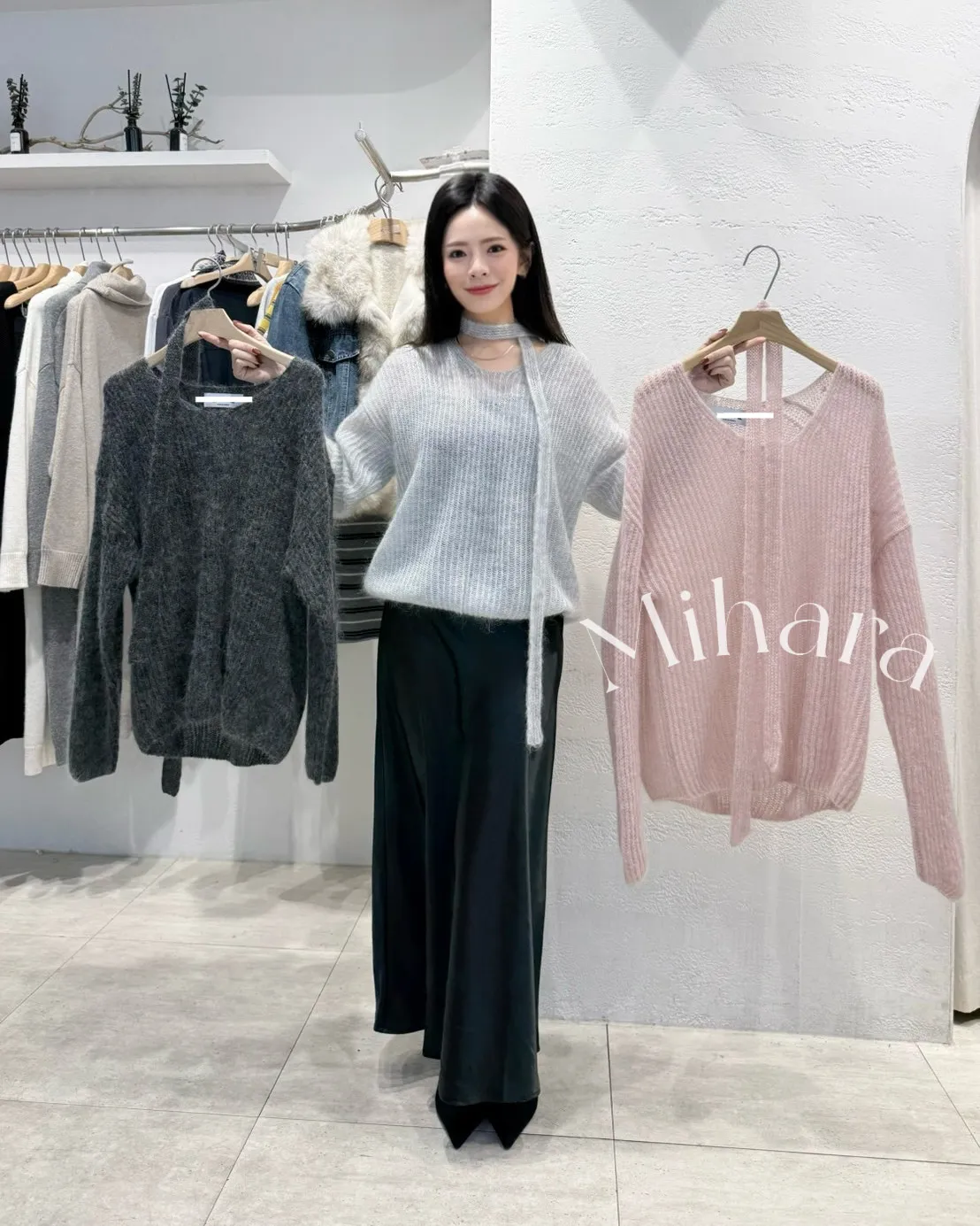 A47 1209許願家羊毛80%V領針織毛衣附綁帶3色