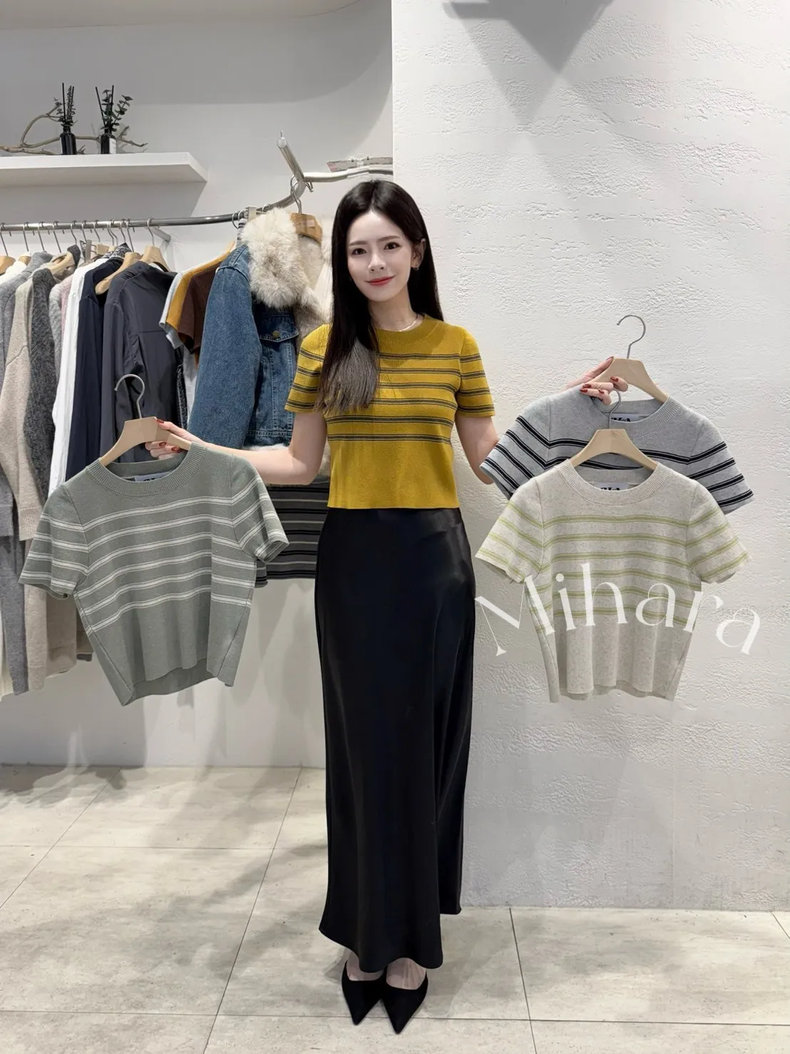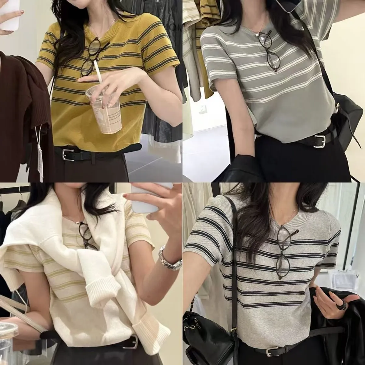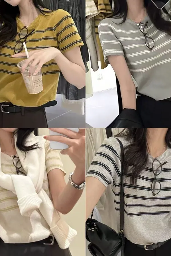 A50 1209許願家橫條圓領針織上衣4色