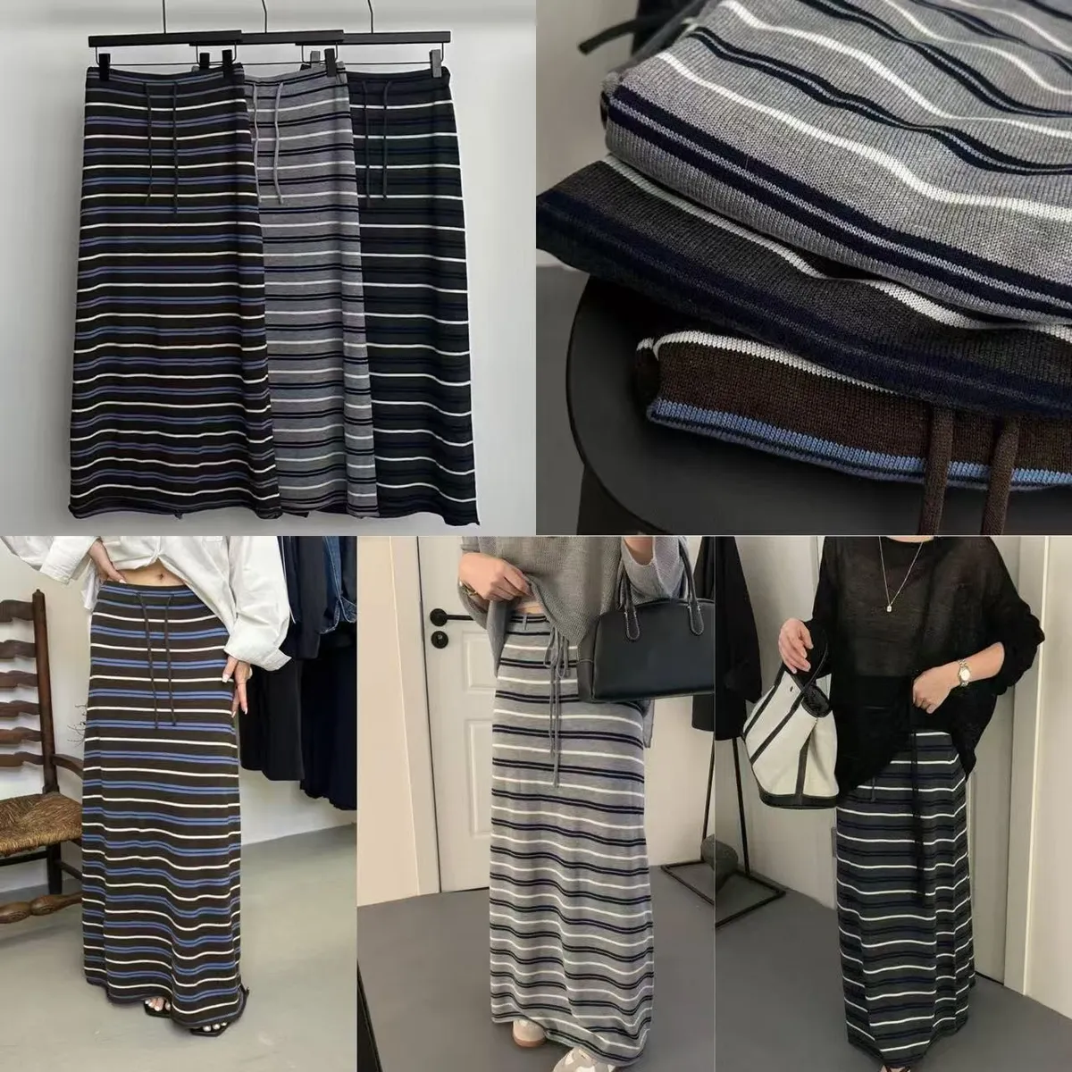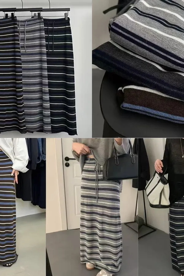 A54 1209許願家抽繩綁帶橫條針織半裙
