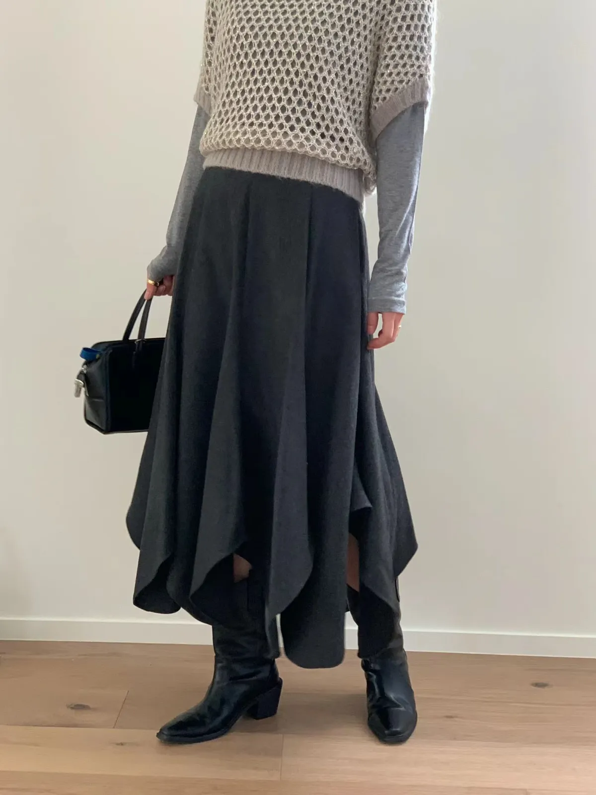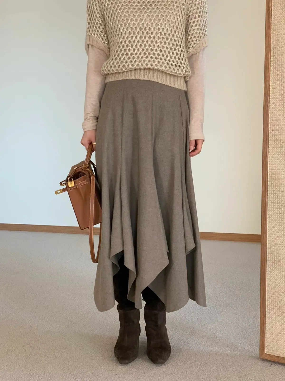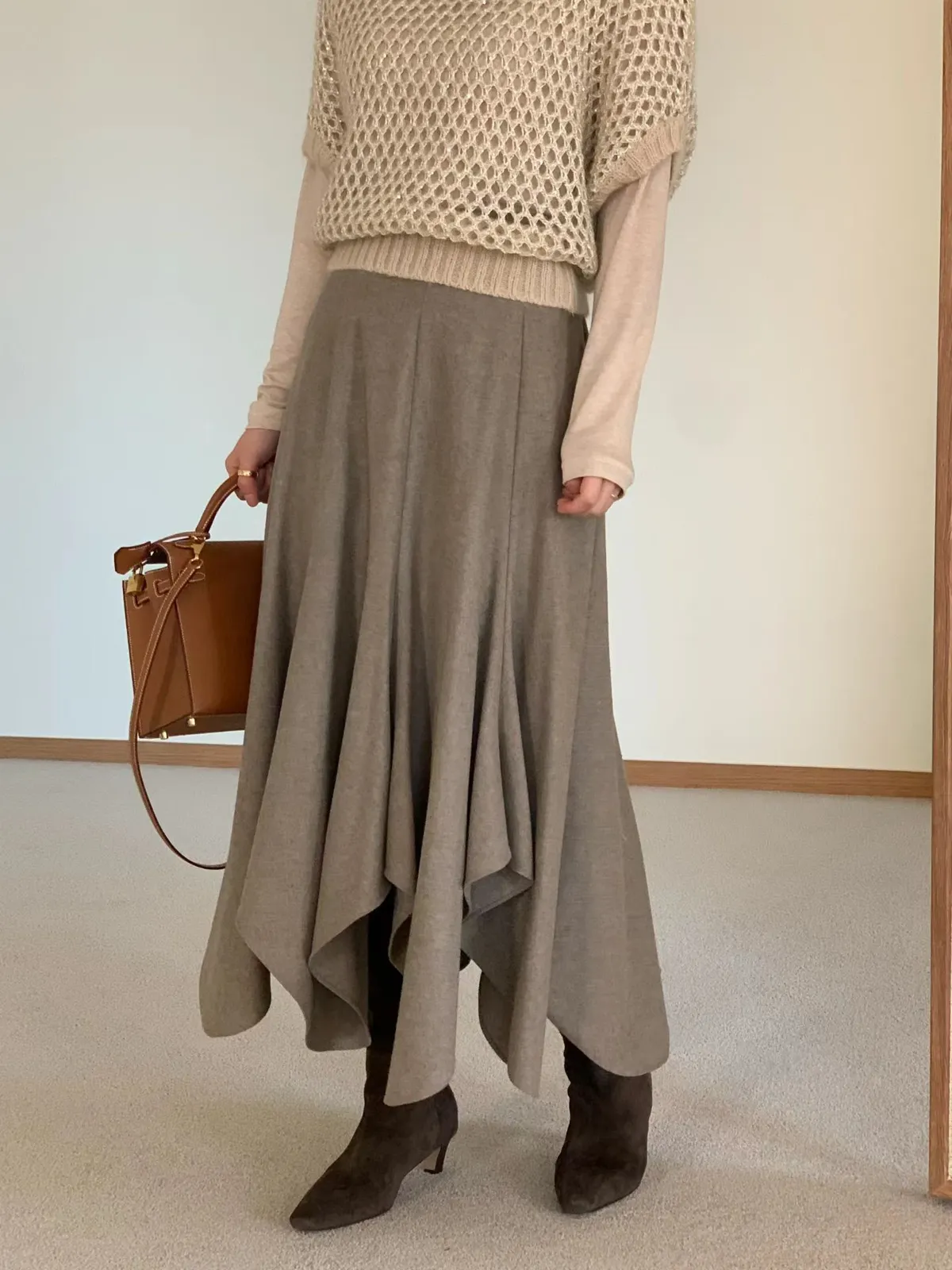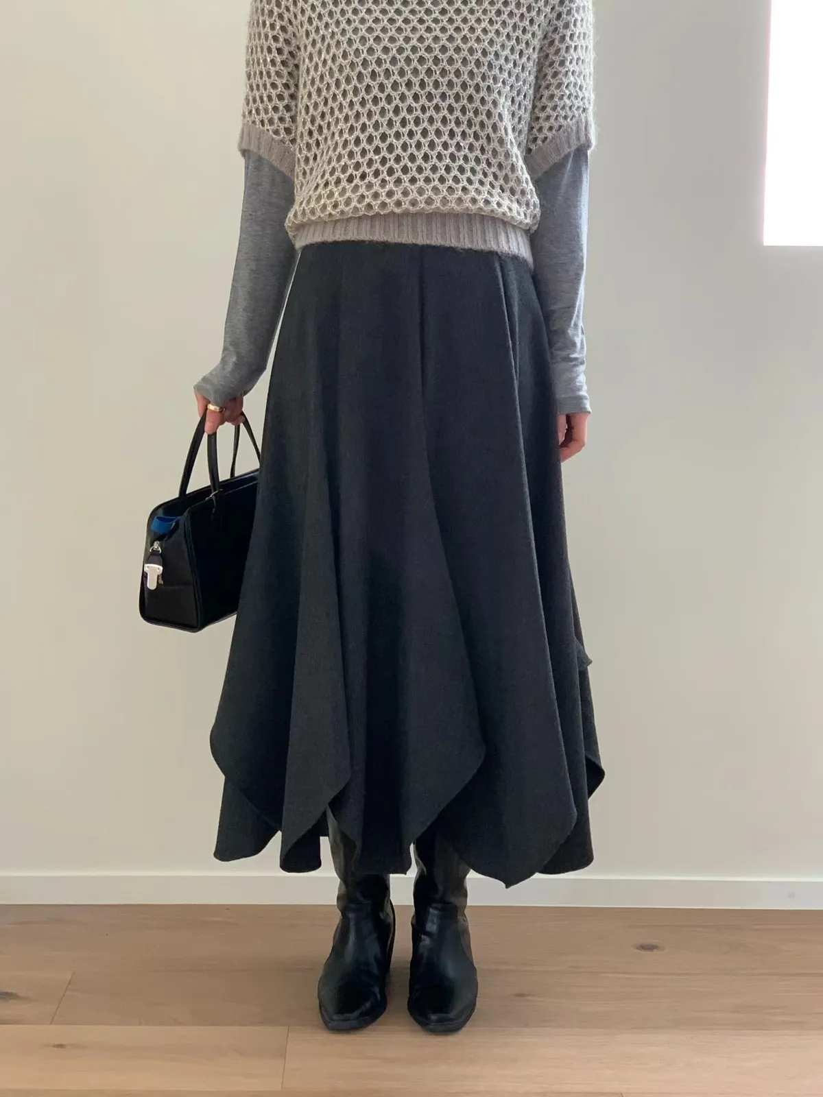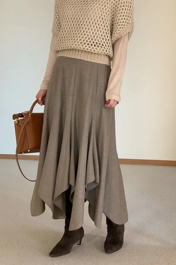 A56 1209氣質歐膩家混羊毛不規則半裙2色(S/M/L)